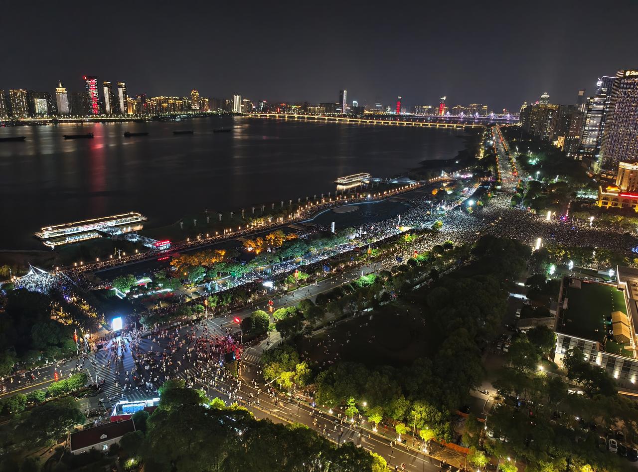 + 5000架无人机编队,创历年之最。 创新技术: 双塔九船联动:双子塔顶120