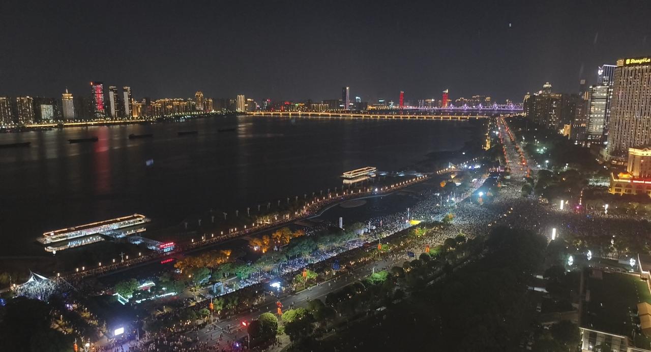 此次烟花秀以“古代银、革命红、现代蓝、未来金”四色烟花串联四大篇章,将滕王阁、赣