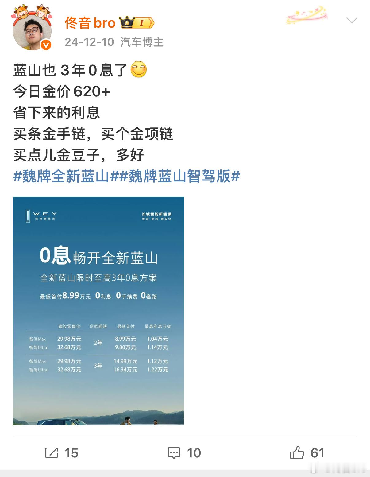 你看我多好,年初建议买0息的全新魏牌蓝山