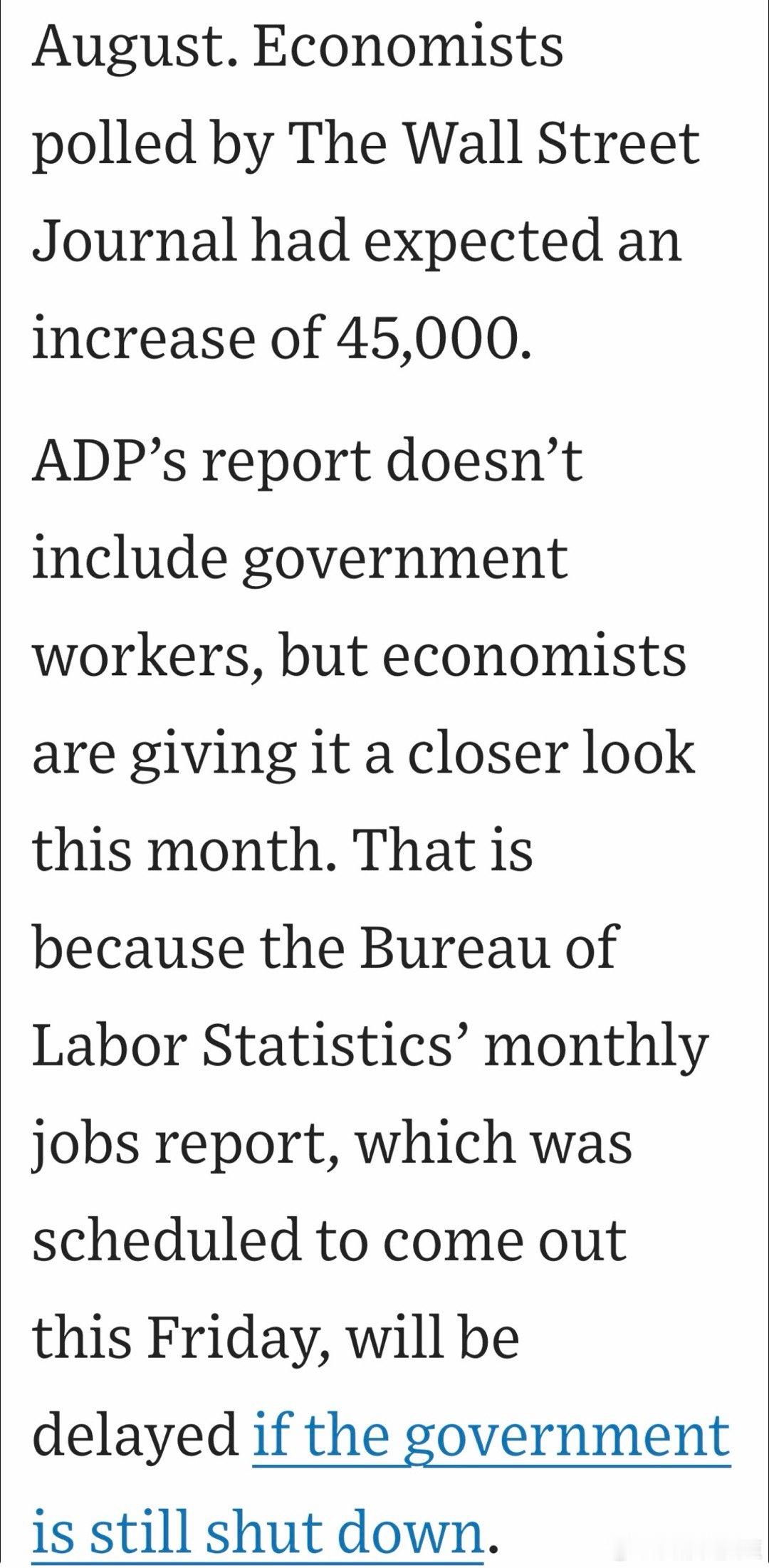 九月非农就业报告,原定本周五公布,如果政府依然关门,不会有数据