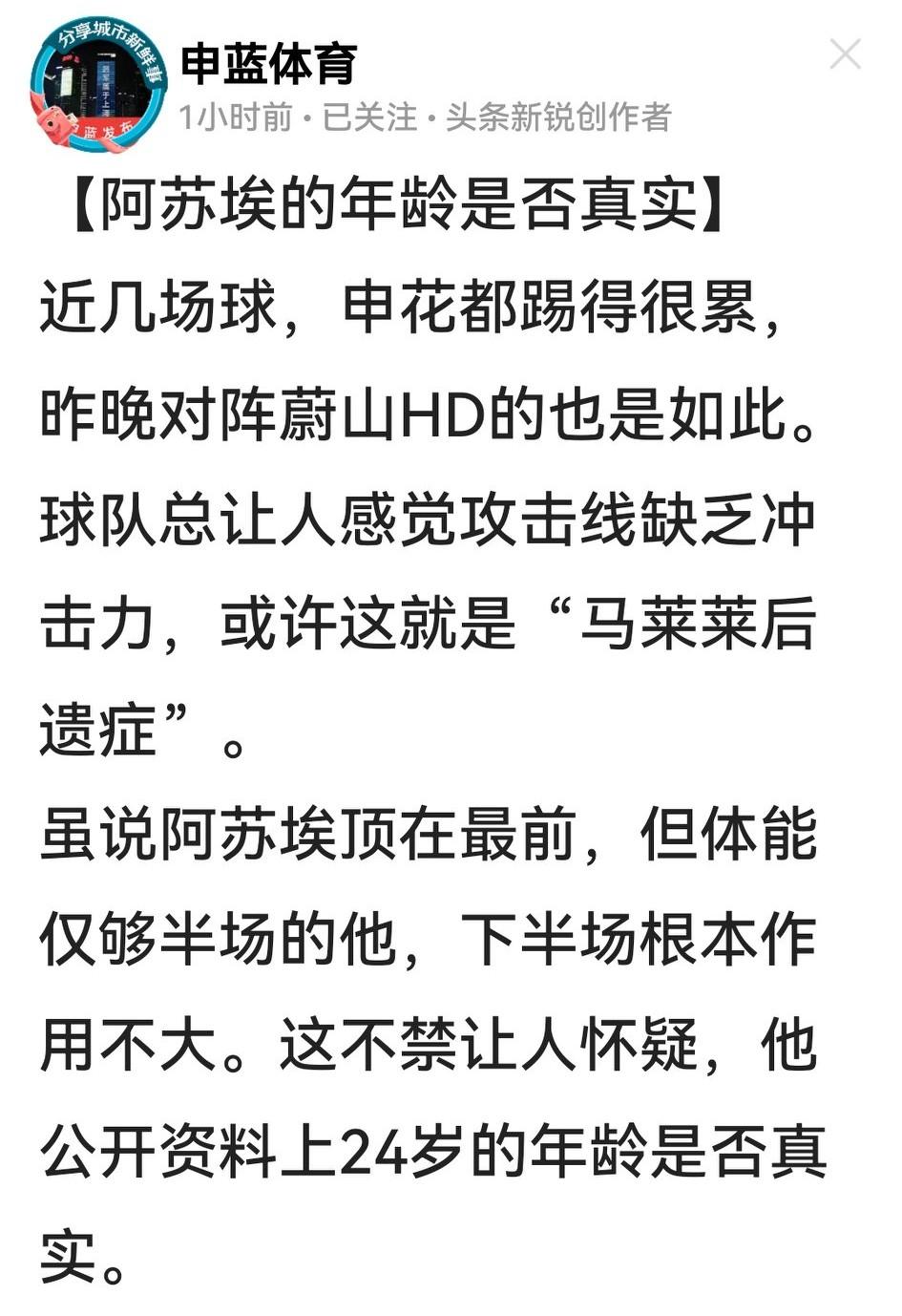 人倒霉了,哪怕建了功也仍遭人说。阿苏埃无疑是昨天亚冠赛场的风云人物:打入申花唯一