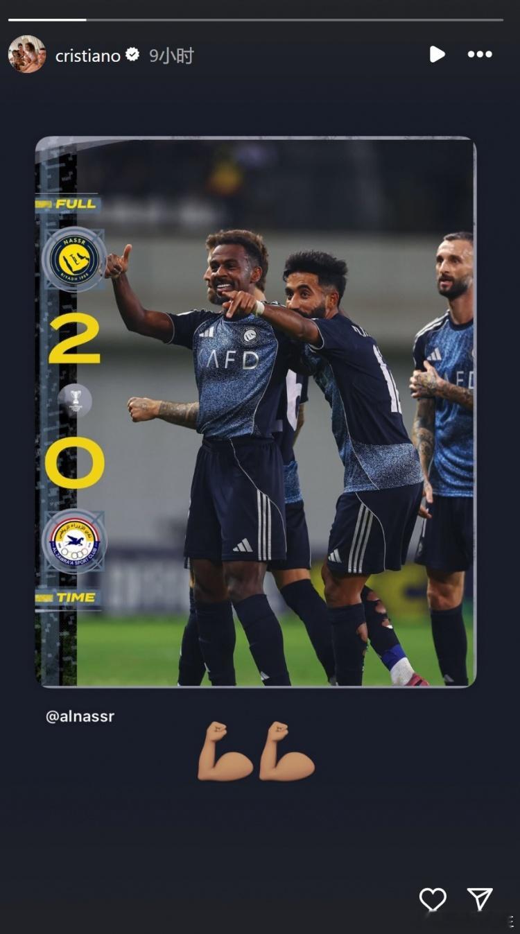 此役C罗轮休没有出战,他在社交媒体上晒出比赛海报,庆祝利雅得胜利取胜。