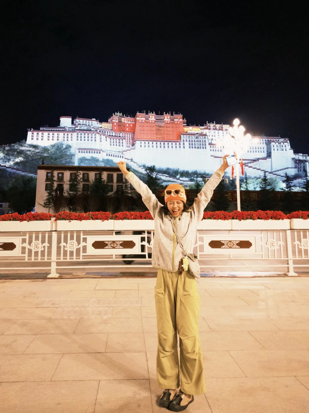 虽然布达拉宫门前八点就闭园了,但前面的广场上还能拍拍照留念,灯光下的布达拉宫依旧震撼到爆。