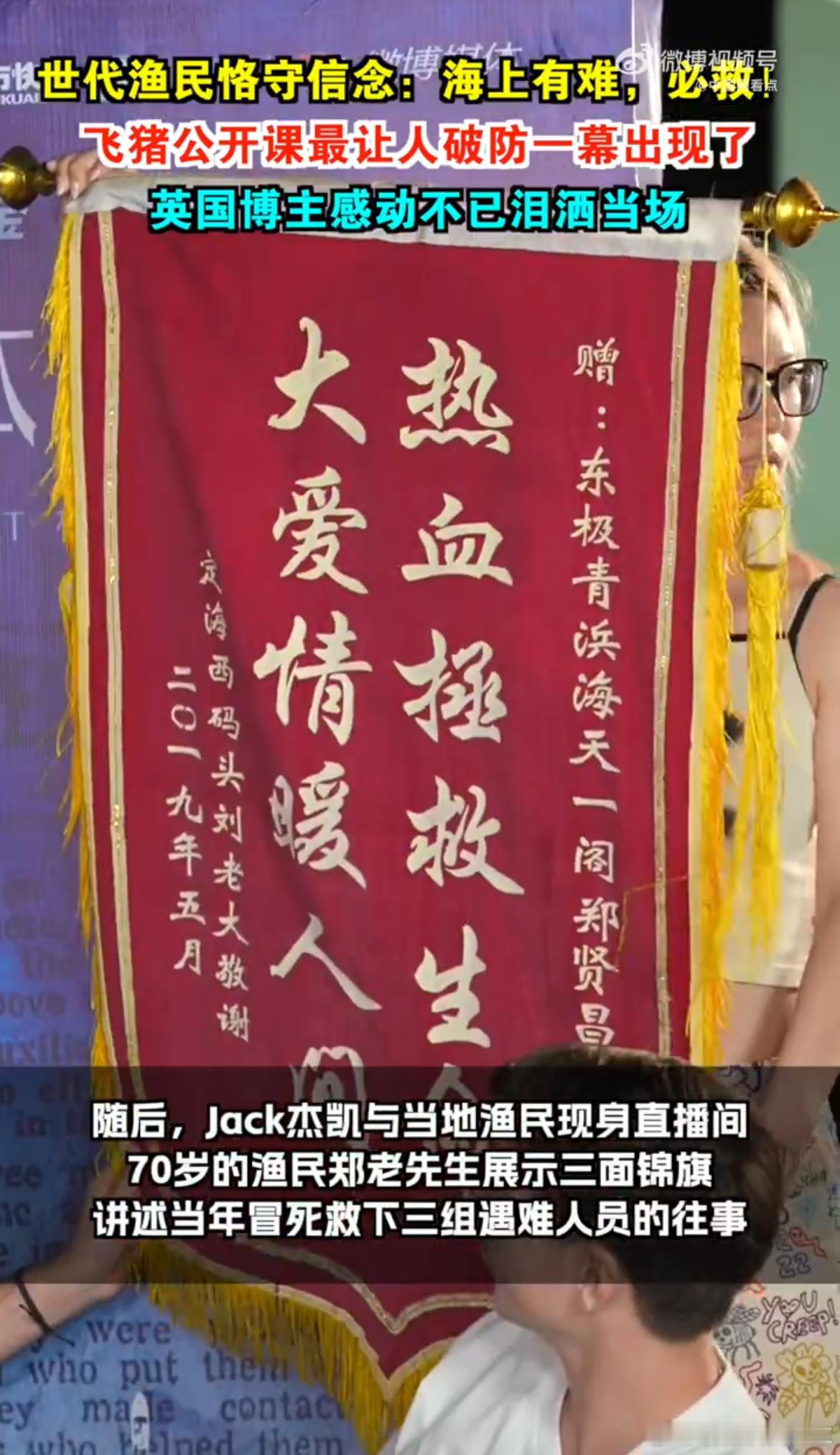 在飞猪东极岛里斯本丸公开课上,英国博主Jack杰凯因被中国渔民在二战期间营救英国战俘的英勇事迹感动而落泪。