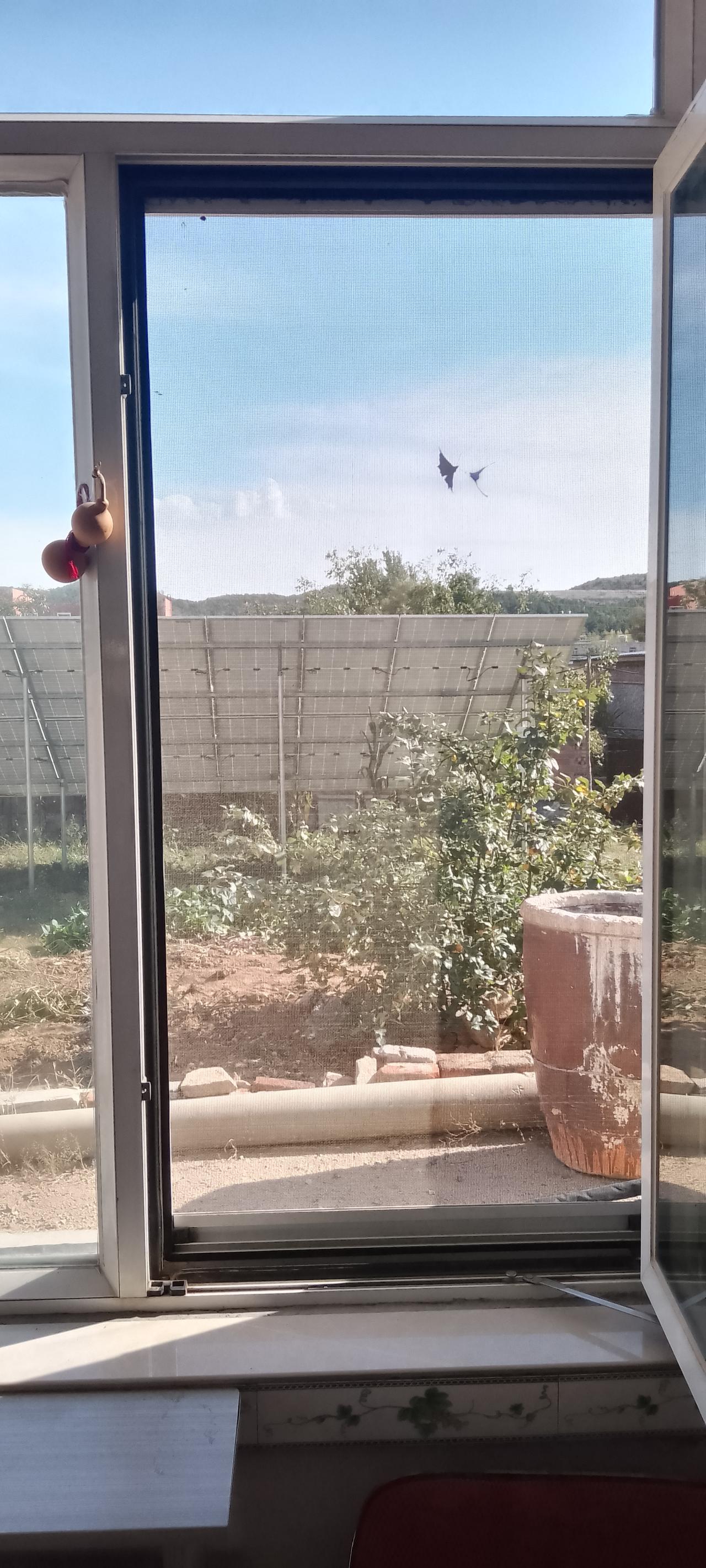 昨天放假回到老家,把老屋房顶的彩钢瓦,又重新雇人喷了一下! 中午时温度特别高,且没有一丝风,正适合彩钢瓦喷漆的作业;约一个小时喷完两遍,工人走后,我独自坐在屋里默默的环视着屋内屋外,脑海中涌现出父母生前的种种情形,如果父母现仍健在,看到家里"日新月异"的情形,该会多么的高兴啊,可惜,子欲养而亲不在了…… 我正默默感伤时,一扭头发现屋内窗前有一只蝴蝶在翩翩起舞;听很多人说这是已逝去的老人回来看望自己的子孙,难道窗前这只舞动的蝴蝶就是回来看我的父母吗?因为门窗都是关着的,是什么时间、从什么地方飞进屋的这只蝴蝶呢? 久久地凝视着这只蝴蝶,后打开纱窗,把它放了出去! 愿已逝的父母在天堂安好,愿生的我们都平平安安!