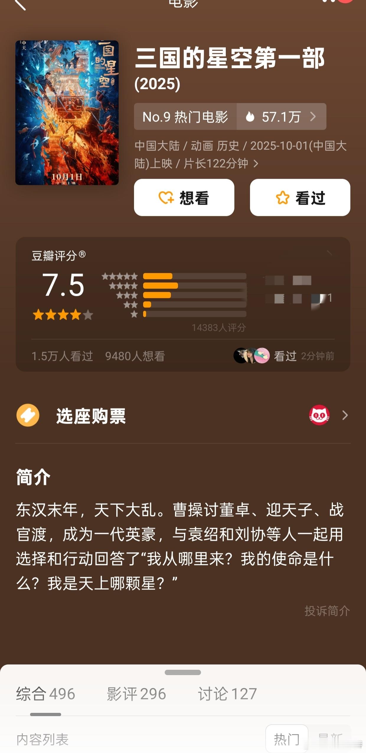 听听温特怎么说 《三国的星空第一部》豆瓣开分7.5分,高了还是底了?大家客观评价一下。