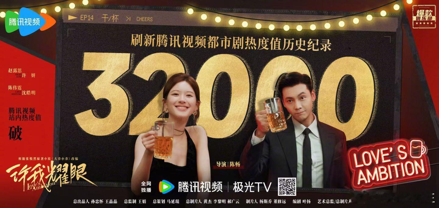 《许我耀眼》热度值突破32000,打破站内都市剧历史纪录。这部剧爆成这样,赵露思