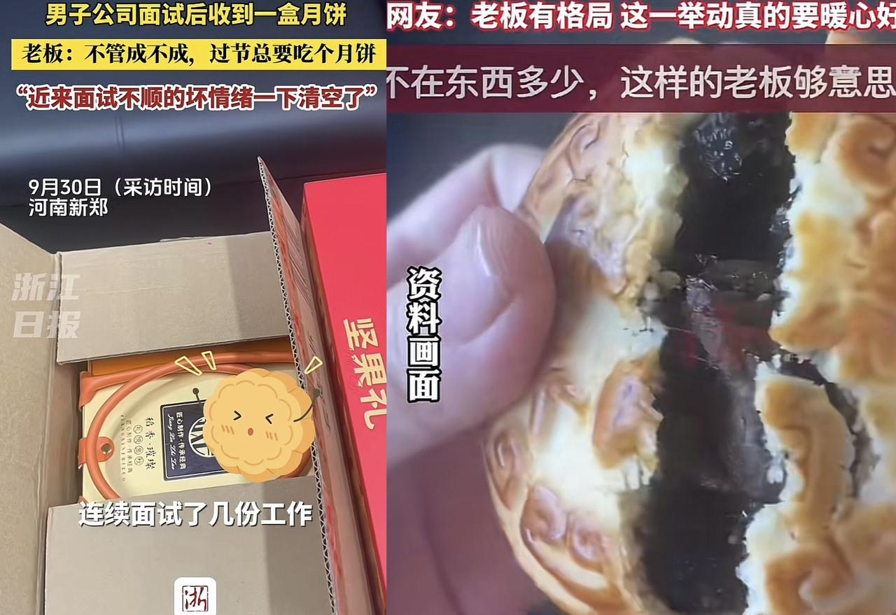 万万没想到!男子面试新工作,准备走的时候老板说“你过来一下”,他以为自己面试通过了,谁成想 老板说“不管面试过不过,过节总要吃个月饼”,说完就给男子拿了一箱月饼和一箱坚果! 男子当时手里还捏着被汗浸湿变软的简历,听到这话直接愣住了,结结巴巴地说“这多不好意思”。老板却执意把东西塞给他,说这只是过节心意,和面试无关。这月饼还是本地老字号的五仁馅呢。 这老板没搞虚头巴脑的套路,就凭这一箱月饼和几句实在话,一下子就打动了好多人。有人说这老板会做人,以后招人不愁。但我觉得,这背后是老板懂得尊重每一个求职者。面试本就是双向选择,求职者的诚意值得被善待。这种不功利的善意,才是真正的人文关怀。真正的好企业,不是靠口号,正是这些小细节攒起的温度。 有人扒出这家公司是做建材的,规模不大,但员工都说老板好。逢年过节给保洁阿姨发红包,员工家里有事也愿意帮忙。网友辣评这样的老板请给我来一打,拜哪个方向可以遇到呀!员工面试 福利