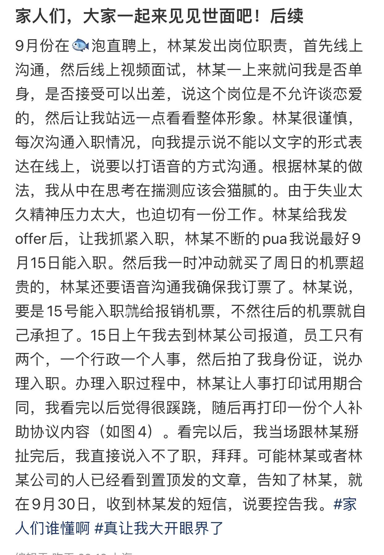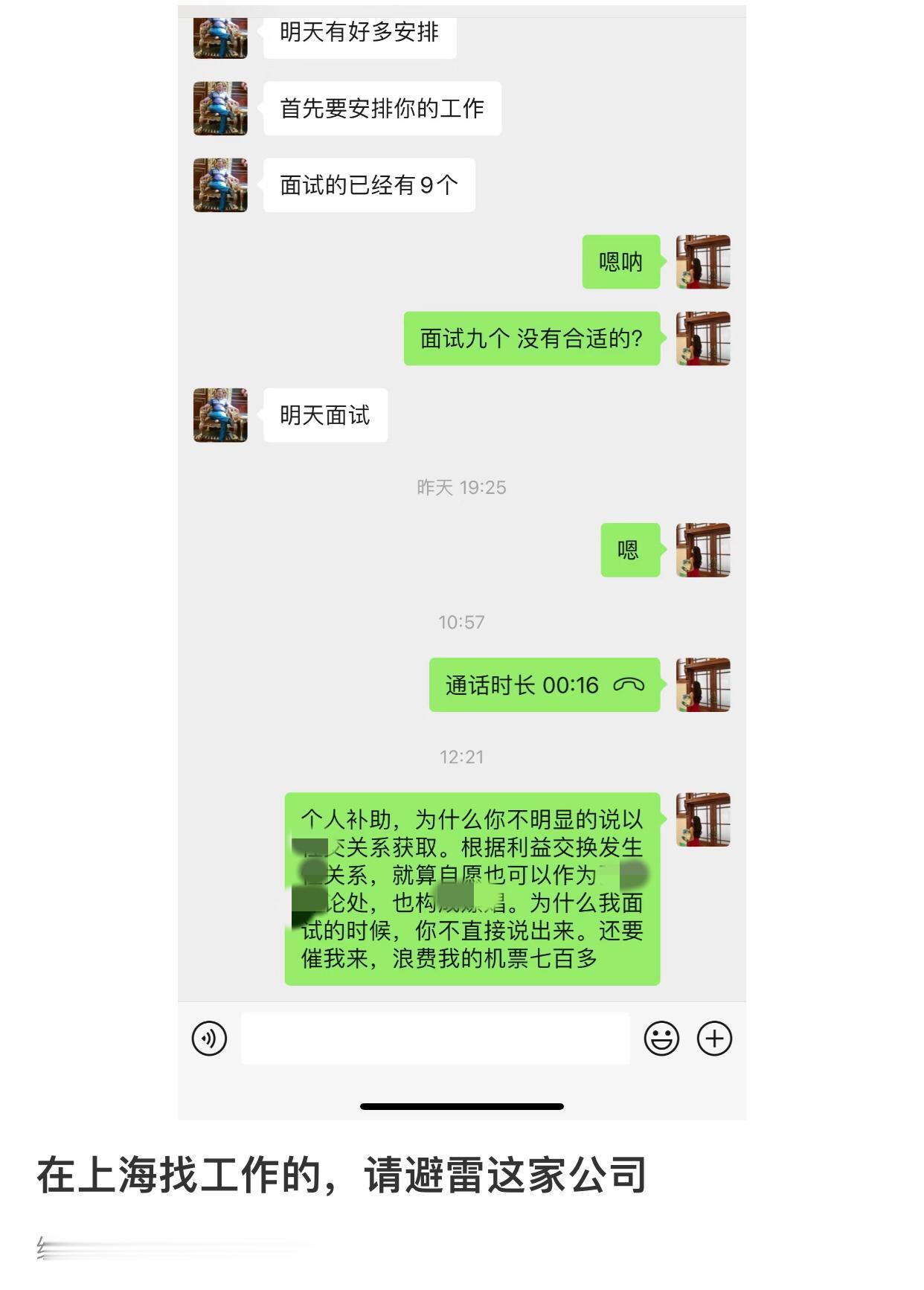 没想到竟然还有这样的公司,上个班还要提供x服务。刷到上海一女生发的避雷贴,说她和