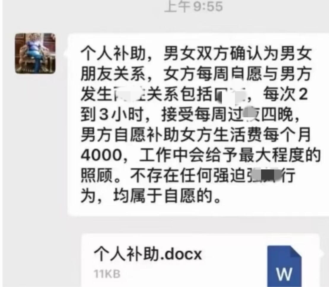 没想到竟然还有这样的公司,上个班还要提供x服务。刷到上海一女生发的避雷贴,说她和面试官林某线上视频面试的时候,对方上来就询问她是否单身,说这个岗位不允许谈恋爱,还让女生站远点看整体形象。并且沟通入职情况的时候提示女生不能以文字的形式表达在线上,只能通过语音的方式沟通。 女生对于林某的种种做法感觉有猫腻,但由于失业太久了,精神压力比较大,迫切想要这份工作,再加上林某一直催她最好在9月15号前入职,所以她一时冲动同意买机票这家公司去入职上班。 在林某给女生入职手续的期间,他给了女生一份个人补助协议,这个补助协议内容让看到人都不禁亚麻呆住了。 内容是这样子的,他要求女生和他确认为男女朋友关系,还要求女方每周自愿和他打扑克,每次2到3小时,包括接受每周过夜四晚,为此男方自愿补助女方生活费每个月4000,工作也会最大程度的照顾女生。并表示这些都是双方自愿的。女生只是来求职,没想到竟然还有这样的要求。白天上班当牛马,晚上加班当鸡鸭,想想都觉得有多离谱。 后续女生当场给林某掰扯完就直接走了,并在网上曝光这家公司。希望大家应聘的时候擦亮眼睛。