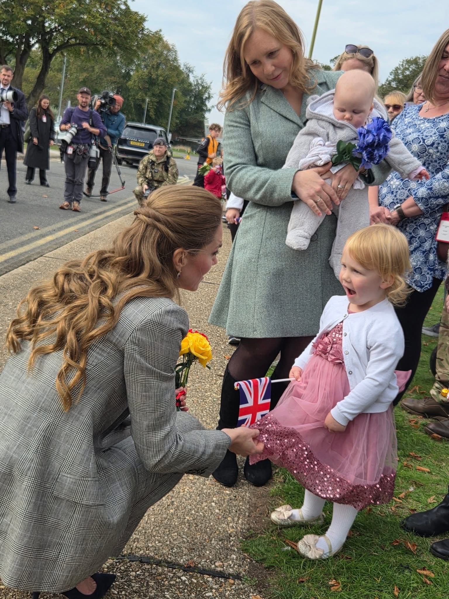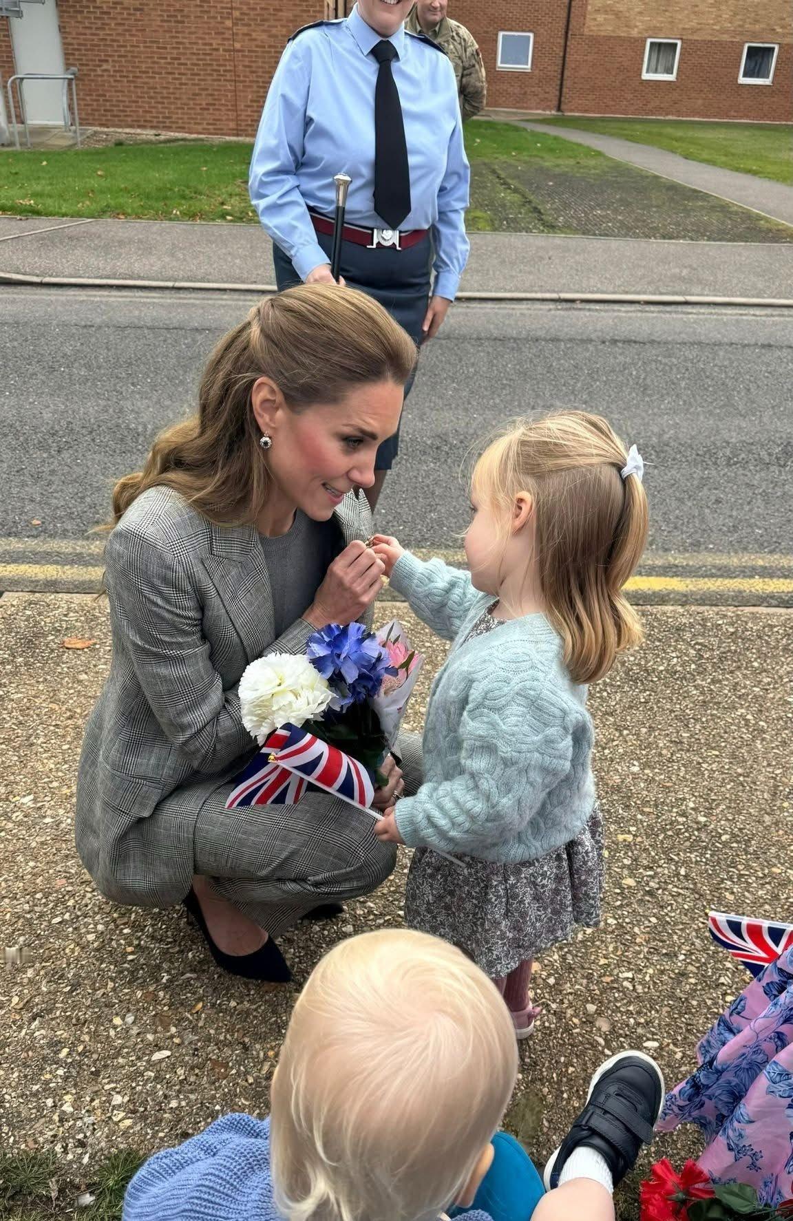 4)与基地内/外民众互动期间,有个小女孩先后“看”上了她的皇家空军徽章胸针以及卡地亚手表,凯特笑着建议:“或许你可以把它列在圣诞清单上,问问圣诞老人?”(婉拒了哈[笑cry])