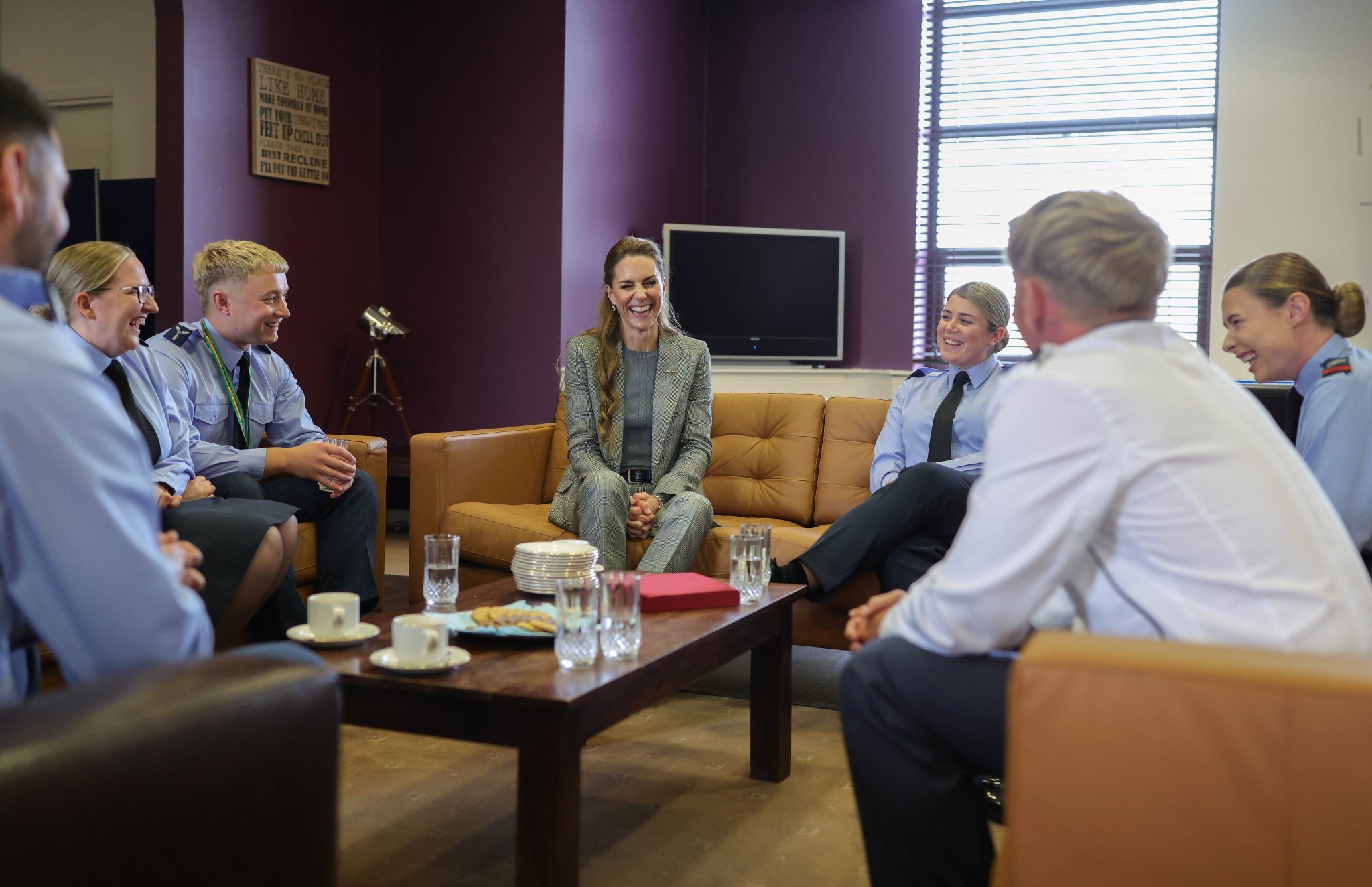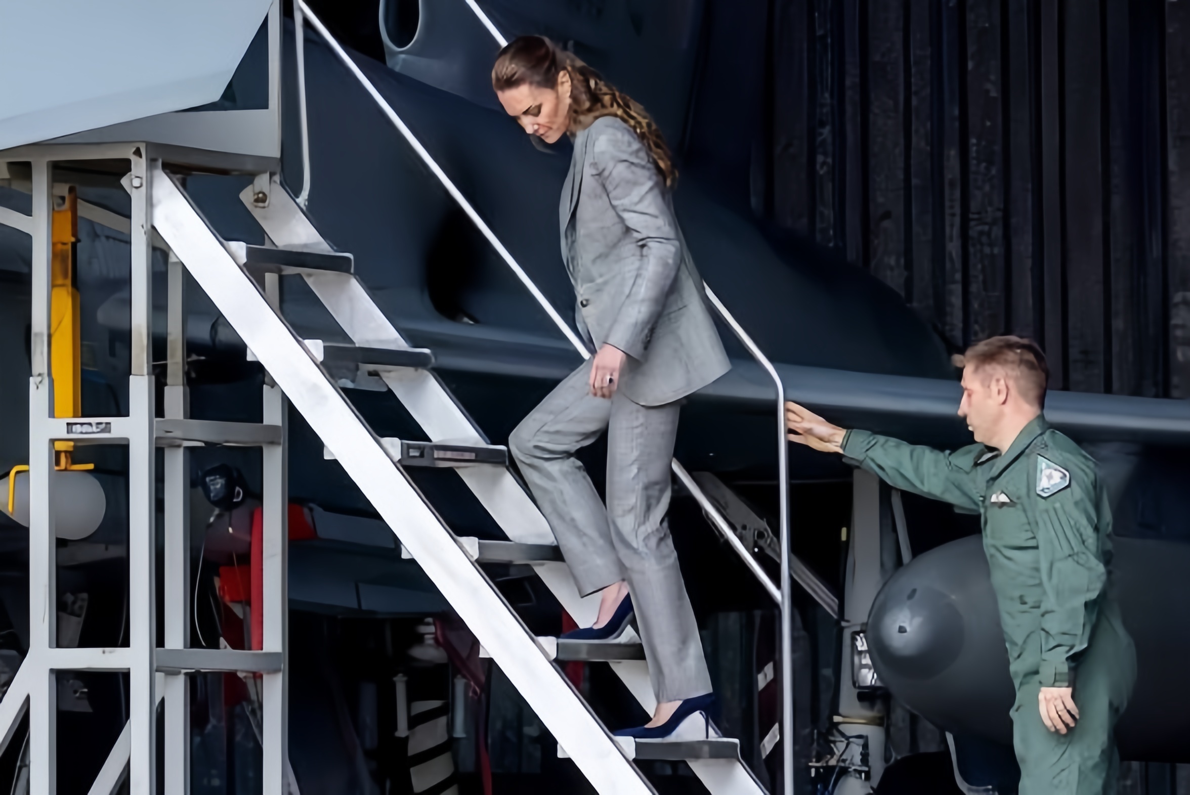 这是凯特首次以皇家空军荣誉准将的身份到此访问,(因天气原因)抵达的时间点是比原定时间晚了一小时,(有一视频)在抵达【公共休息室】后,凯特与等候多时的诸位说了抱歉(原话:你们已经等候多时了,我很抱歉来晚了)~