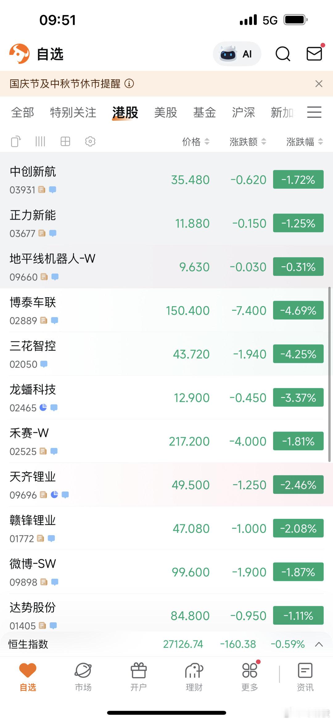 今天港科股几乎全盘尽墨,并且呈现大跌趋势