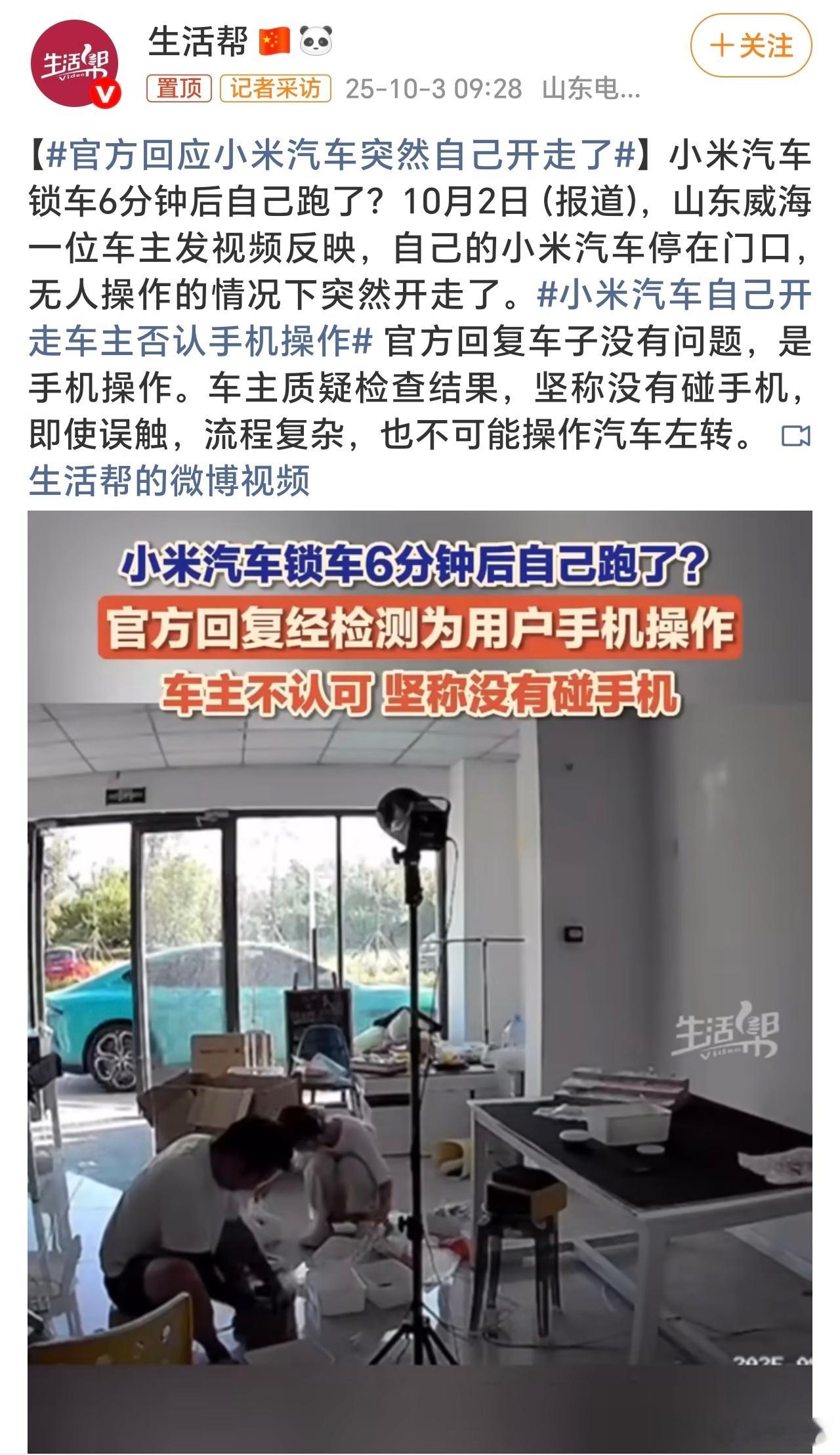 小米汽车自己开走车主否认手机操作官方与车主各持其词!官方称车主误触手机;车主说有