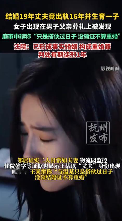 “藏了16年还是露馅了!”山东,女子在公公葬礼上,发现有个陌生女子披麻戴孝,以“儿媳”身份守灵。她随后发现,结婚19年的丈夫,竟然出轨16年,还生了个私生子,更以跑“长途货运”为名不回家,跟第三者同居,女子愤怒的把丈夫告上法庭,第三者却狡辩:我们就是搭帮过日子,没领证,不算重婚。法院的判决出乎意料! 据新闻夜航10月1日报道,这事发生在2022年6月,尚女士的公公去世了,作为家里正经的儿媳妇,她里里外外地忙碌着,帮着丈夫处理葬礼的各项事宜。 然而,灵堂里那个陌生的女人,像一根刺扎进了她的心里,那个女人看起来和家里的亲戚很熟络,甚至会主动接过吊唁者手里的香,动作自然得仿佛她才是这个家的女主人。 尚女士悄悄向旁边的亲戚打听,可大家要么含糊其辞,要么说不清楚,只知道这人是丈夫王某带来的,葬礼上的这一幕,像一颗怀疑的种子,在尚女士的心里迅速生根发芽。 丈夫王某常年在外跑长途货运,夫妻俩聚少离多是常态,尚女士一直觉得丈夫为了这个家辛苦奔波,自己就应该把家里打理好,孝顺公婆,抚养女儿,不让他有后顾之忧。 她以为自己的付出能换来一个安稳的家庭,却没想到,现实给了她一记响亮的耳光,葬礼结束后,尚女士再也无法压抑内心的疑虑,她开始偷偷调查丈夫的行踪。 不查不知道,一查吓一跳,原来,丈夫所谓的“长途货运”,只是一个彻头彻尾的谎言,早在2006年,也就是他们结婚的第三年,王某就已经和另一个名叫温某的女人在一起了。 更让她崩溃的是,他们两人还有一个已经16岁的儿子,从2016年开始,王某更是变本加厉,他以跑车需要长期在外为借口,干脆搬去和温某同居。 他们在临沂的一个物流园附近租了房子,对外一直以夫妻名义生活,周围的邻居都证实,经常看到王某和温某像普通夫妻一样,一起出门买菜,一起散步回家。 温某生病住院,陪在她身边、在手术单上以“丈夫”身份签字的人,也是王某,物流园的监控录像更是记录下了王某几乎每天都会回到那个“家”的画面。 19年的婚姻,16年的欺骗,尚女士感觉自己就像一个笑话,她在家辛苦操持,心疼丈夫在外奔波,可人家早已儿女绕膝,享受着另一份家庭的温暖。 让她感到屈辱的是,在公公的葬礼上,丈夫竟然敢把那个女人带到灵堂,让她以“儿媳”的身份跪拜,这已经不是简单的背叛,而是赤裸裸的羞辱和挑衅。 愤怒和心碎交织在一起,尚女士没有选择沉默,2023年11月,她拿着收集到的所有证据,一纸诉状将丈夫王某告上了法庭,罪名是重婚罪。 法庭上,王某试图狡辩,称自己和温某只是“搭伙过日子”,并没有领取结婚证,因此不构成重婚,那个女人温某也持同样的论调。 但法律的尊严不容挑战,法院认为,王某在与尚女士婚姻关系存续期间,与温某长期、稳定地以夫妻名义共同生活,并且这种关系在周围邻居、亲友中已经形成了公开的认知,这完全符合事实重婚的构成要件。 有网友评论说:“这男的胆子也太肥了,这是把原配当傻子耍了16年啊!在自己亲爹的葬礼上还敢这么干,这是完全没把原配放在眼里!” 确实,王某的行为已经超出了道德的范畴,触犯了法律的底线,最终,法院采纳了尚女士提供的邻居证言、监控录像以及温某住院时王某的签字记录等一系列证据,认定王某重婚罪成立,判处有期徒刑一年。 王某不服,提起上诉,但二审法院维持了原判,这个判决下来,总算是给了尚女士一丝慰藉,但19年青春错付的伤痛,又岂是一纸判决能够抚平的? 有网友心疼地说:“16年啊,一个女人有多少个16年可以浪费?这个男人不仅骗了她的感情,还偷走了她的人生。” 这件事也引发了大家对婚姻和法律的深思,很多人认为,仅仅判处一年有期徒刑,对于这种长达16年的欺骗和伤害来说,惩罚实在是太轻了。 正如一位网友所言:“犯罪成本太低,只会让更多人心存侥幸,应该加大惩罚力度,让背叛婚姻的人付出应有的代价。” 同时,也有人指出,尚女士的维权之路还没有结束,她完全可以继续提起民事诉讼,要求王某进行损害赔偿,并且追回这些年他用夫妻共同财产赠与给温某以及抚养私生子的钱款。 毕竟,那些钱是他们夫妻的共同财产,不能让破坏别人家庭的人白白占了便宜,如今,王某已经为自己的行为付出了代价,而那个叫温某的女人,也带着儿子搬离了原来的住处,不知所踪。 这场持续了16年的婚姻骗局虽然落下了帷幕,但它留给尚女士的创伤,可能需要更长的时间来愈合,这个故事告诉我们,婚姻不仅需要感情的维系,更需要法律的约束。 任何试图挑战法律底线的行为,无论隐藏得多深,伪装得多好,终究会有败露的一天,天网恢恢,疏而不漏,正义或许会迟到,但绝不会缺席。 对于这件事,您怎么看呢?欢迎在评论区留下您的看法。 信源:新闻夜航2025年10月1日——公公葬礼惊现“另一个儿”,女子才知丈夫出轨16年,法院:重婚罪 丈夫获刑1年。