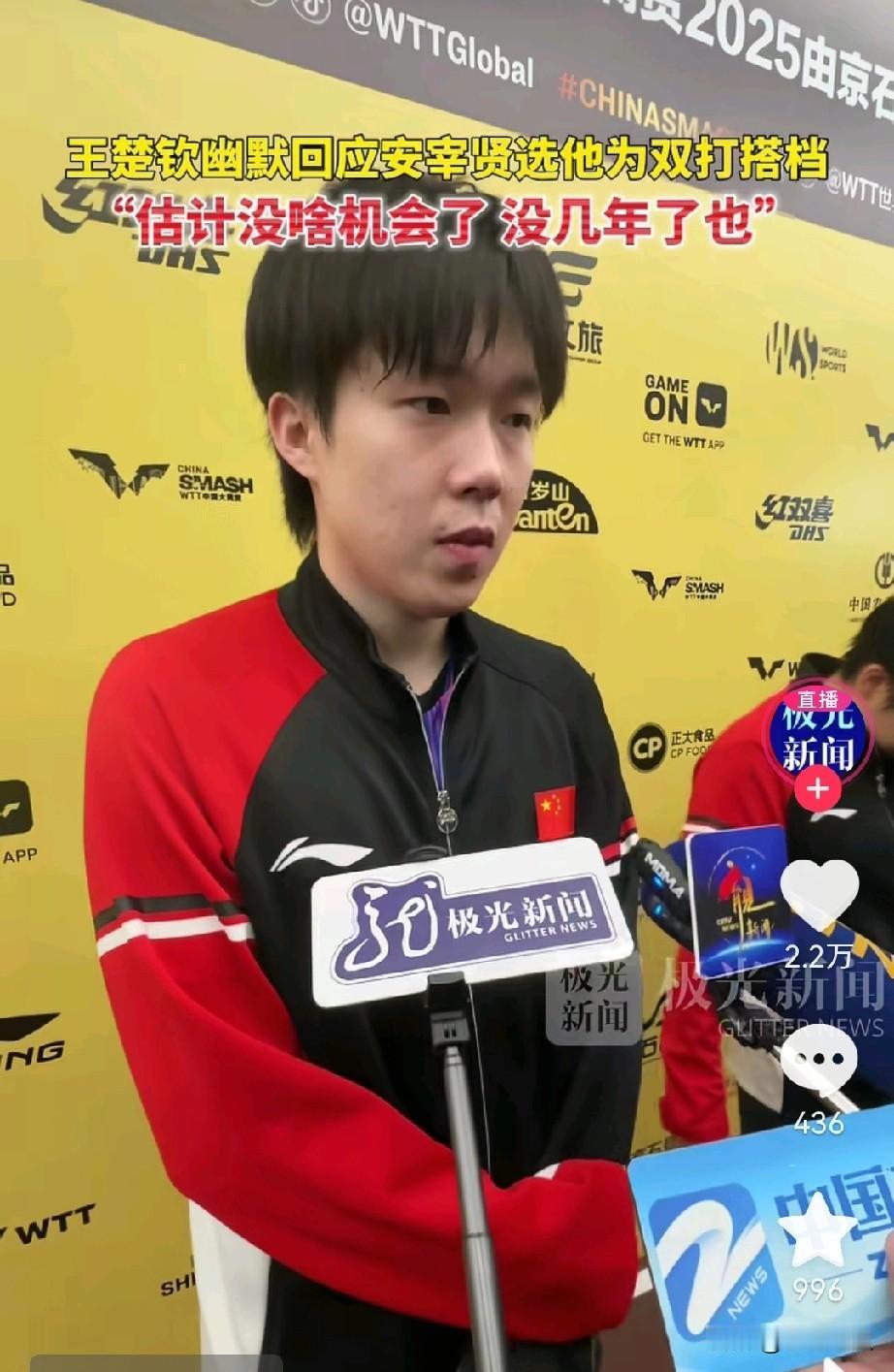 随着王楚钦3-0横扫安宰贤, 中国大满贯男单8强又添一员, 安宰贤这两年进步挺快,从乒超联赛打磨到韩国一哥,可和王楚钦交手7次就没赢过,这次赛前带伤打起来更吃力,王楚钦发球压制、关键分超神,三局就拿下了。 看台上王励勤连声叫好,赵睿翟晓川紧张握拳,王楚钦打得分分漂亮,赢了后两人都笑,安宰贤虽输但服气,王楚钦也没松劲,说下轮要继续做好自己。 这么默契的对手,要是真能组队男双,是不是能擦出更亮的火花?