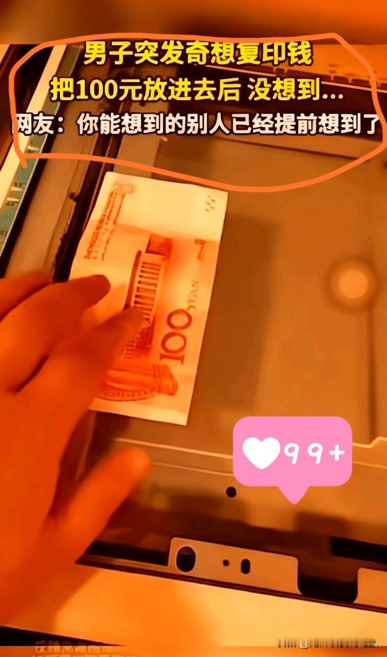 男子将百元钞塞进复印机!全彩复印瞬间碰壁,机器“怒吐”黑纸:这防伪绝了 百元钞票能复印?一男子偏要试!他手持百元现金塞进复印机,特意选了全彩模式,满心期待复刻出“新钞”, 结果机器直接弹出“禁止复印”提示,吐出的A4纸更是漆黑一片,彻底成了废纸。 这一幕被拍下后,网友们瞬间炸锅:“还好印不了!要是能复印,满大街都是百元钞, 那才真要命!”也有人点赞钞票防伪设计:“原来机器早有‘防盗’机制,这波安全防护拉满了!” 看似荒唐的尝试,反倒让大家看清了钞票防伪的硬实力——从设计到技术, 每一环都堵死了“仿造捷径”,也让“复印钞票”成了根本行不通的笑话。