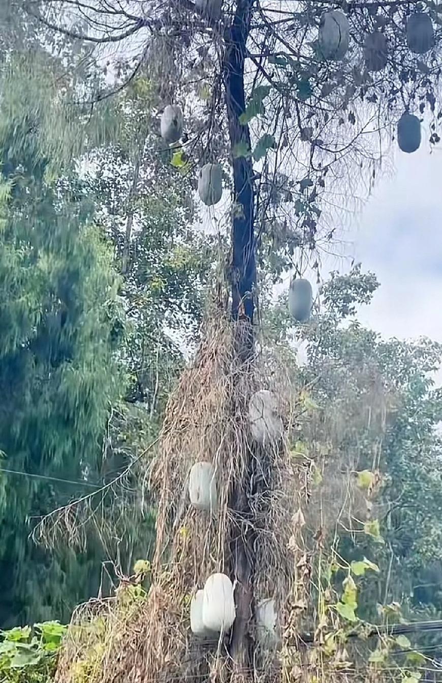 枯藤老树昏鸦, 树枝挂满冬瓜, 邻居不摘, 留着以后发芽? [星星眼][星