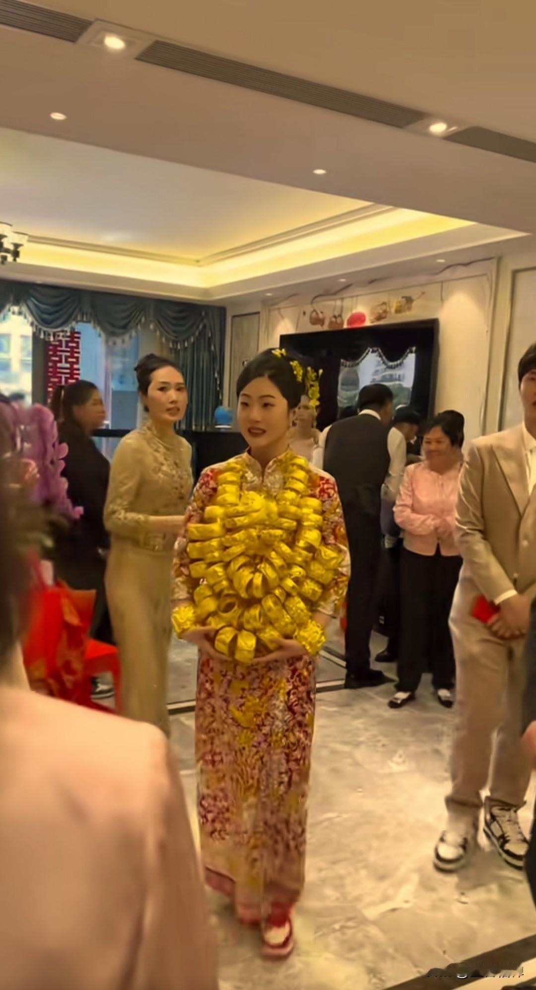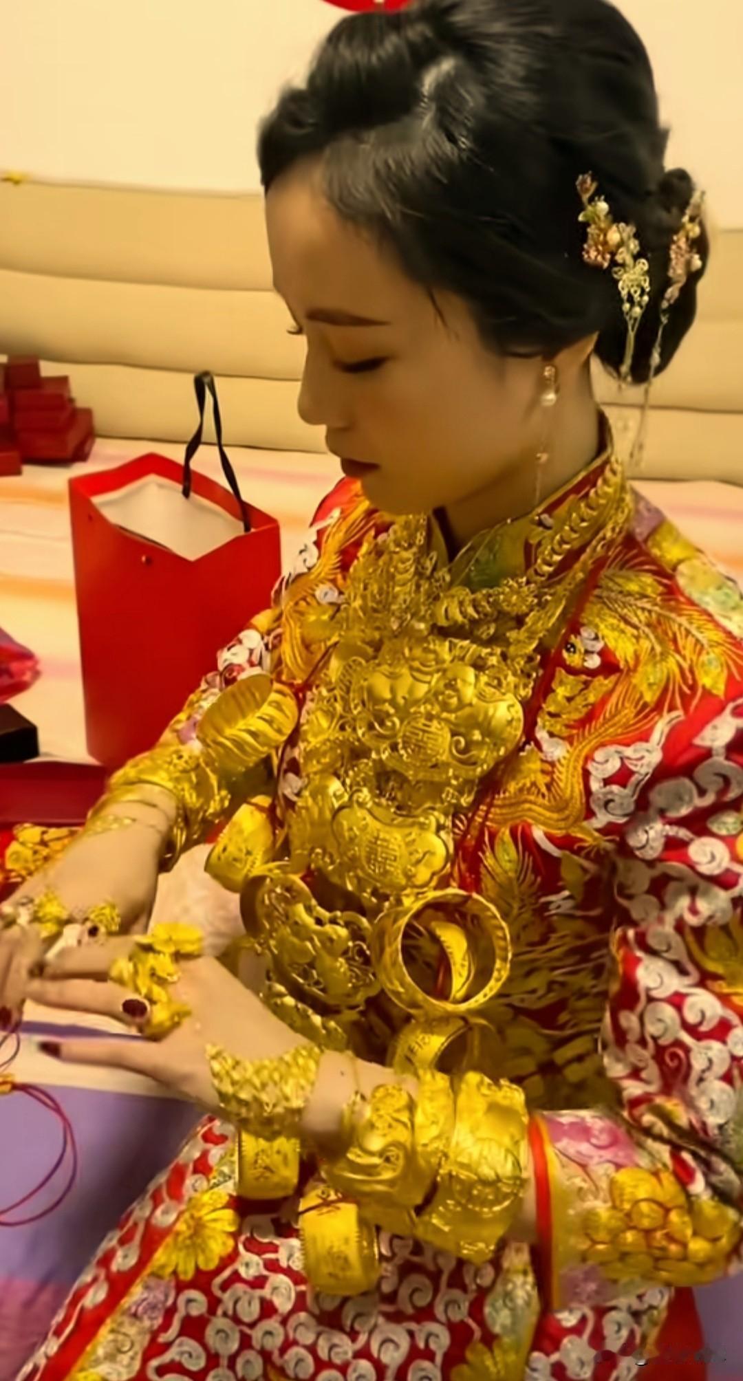 福建的朋友们,请问这是真的吗? 陪嫁这么多的黄金,得不少钱吧?戴着应该很累吧? 福建闽南嫁女,腰缠万贯,女人的浪漫! 有网友说他表哥就找的福建女朋友,婚嫁金要了86万,丈人家给回了180万嫁妆,还有一辆车,还有这么一堆首饰… 福建结婚彩礼 闽南结婚排场 莆田彩礼 福州彩礼 福建结婚风俗 黄金嫁妆 闽南结婚彩礼