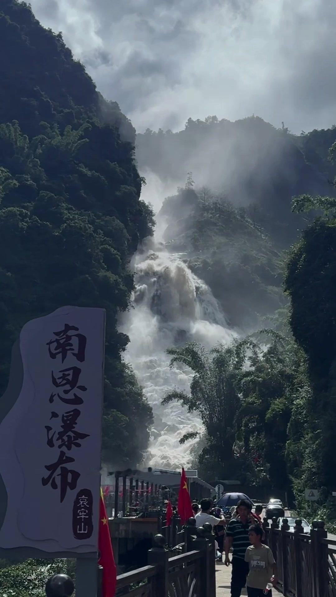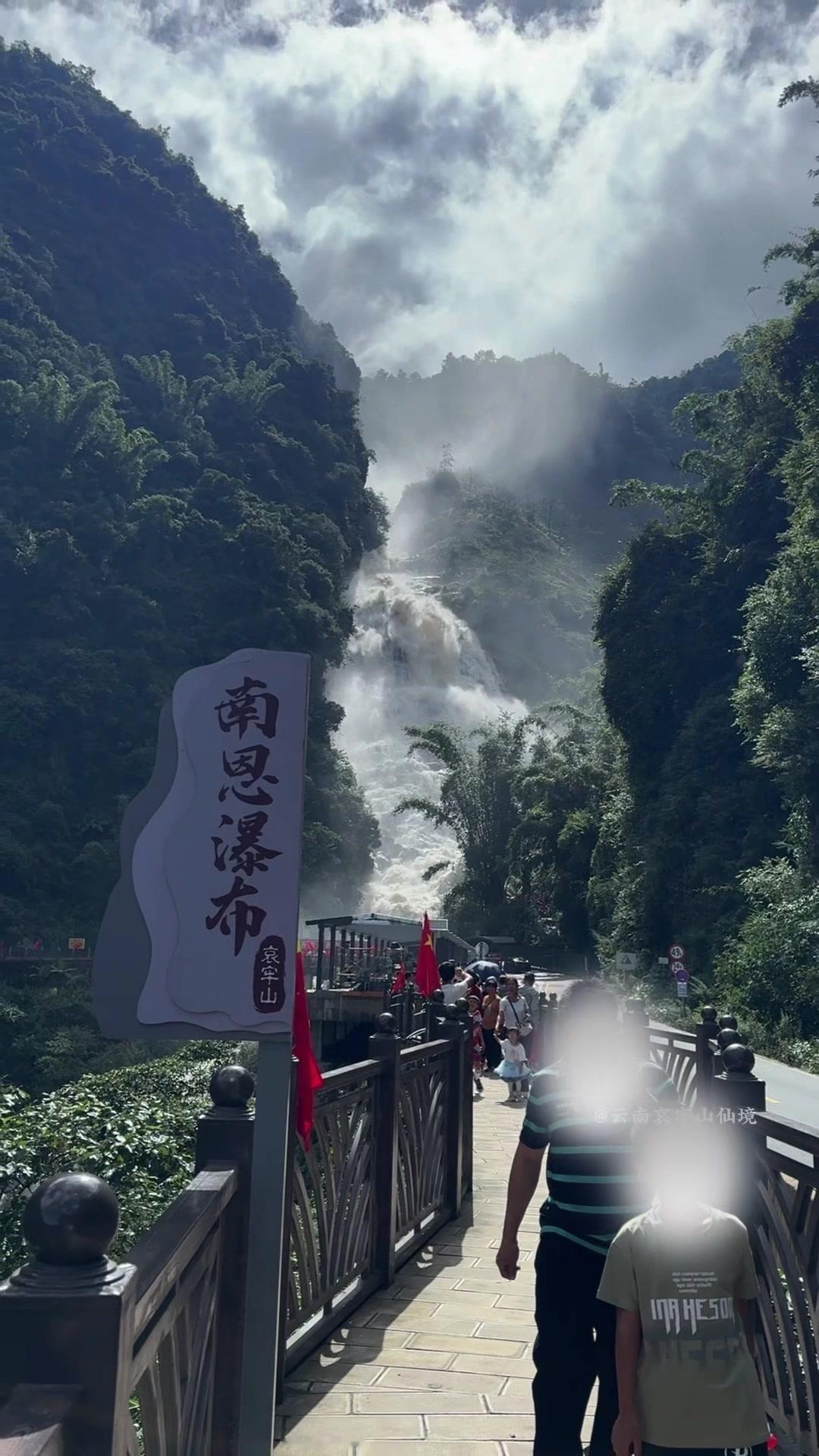 🐎国庆云南行,南恩瀑布美到失语!丰水期的瀑布像银河倾泻而下,水雾扑面而来,整个人都被治愈了~站在观景台上看水流从高处落下,撞击岩石溅起水花,阳光折射下还有彩虹出现,随手一拍都是windows桌面既视感!