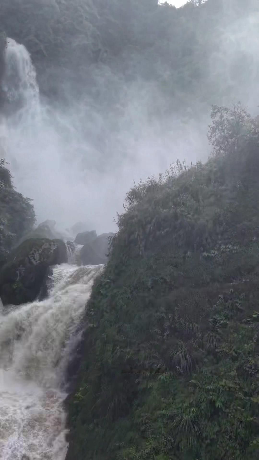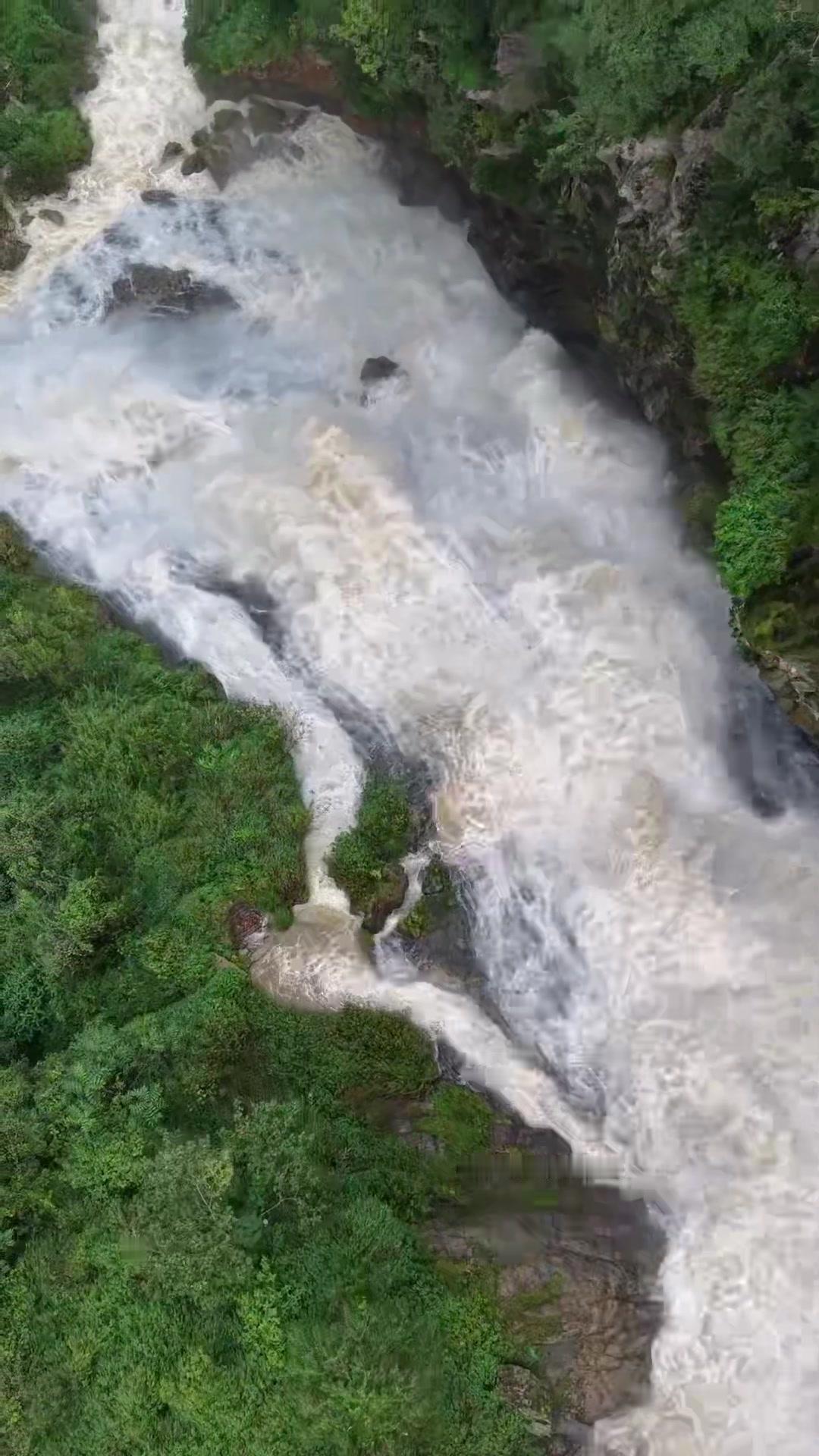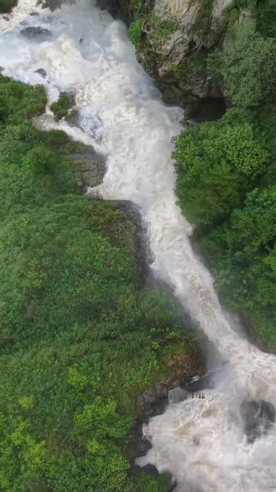 为拍到壮观景色,用穿越机克服无人机难上的位置,当天水量充沛,虽试了几次才成功,但