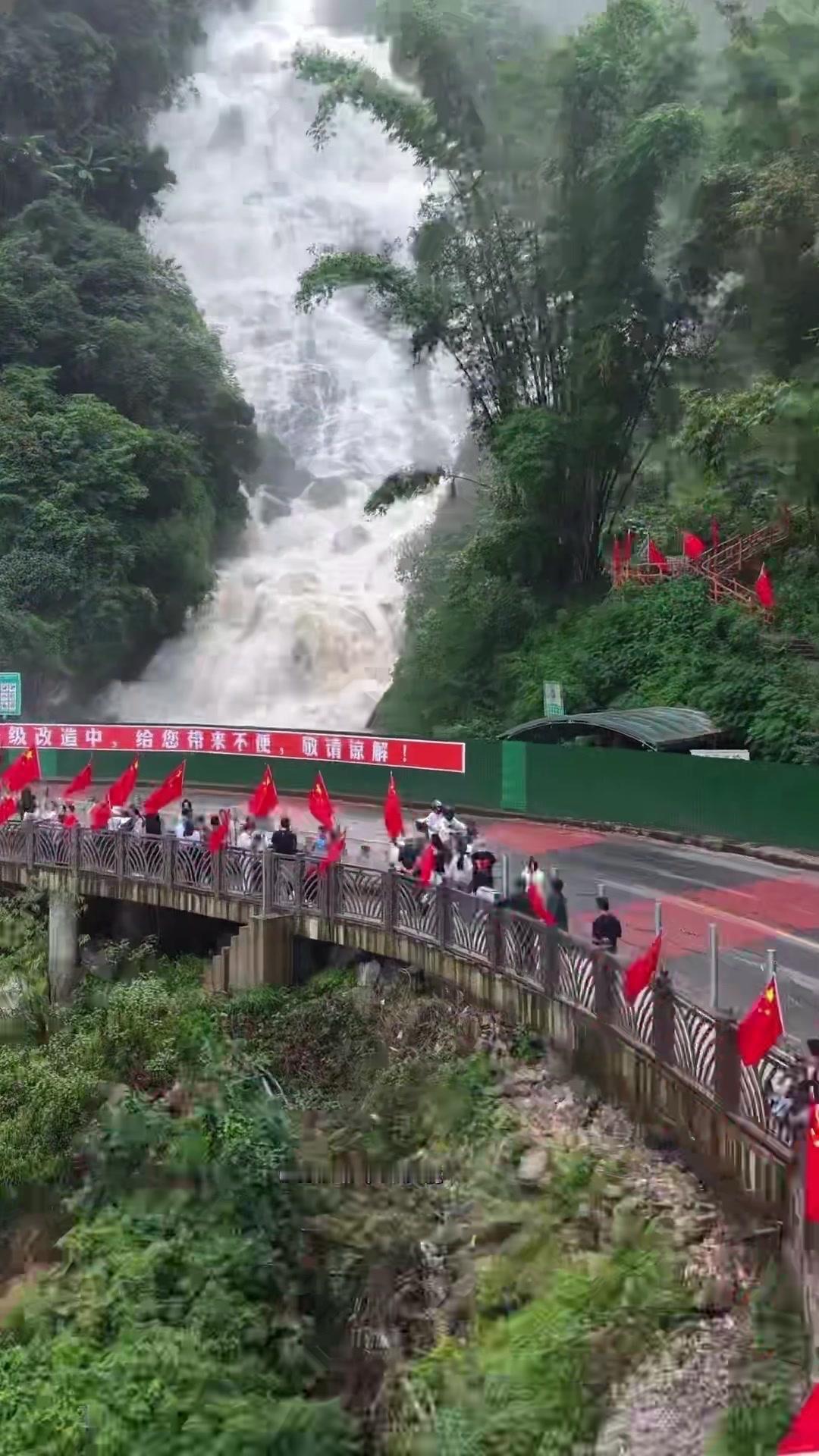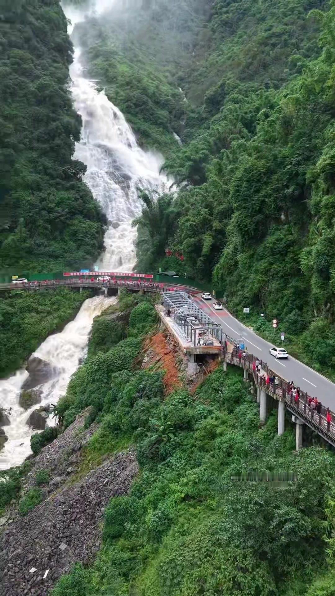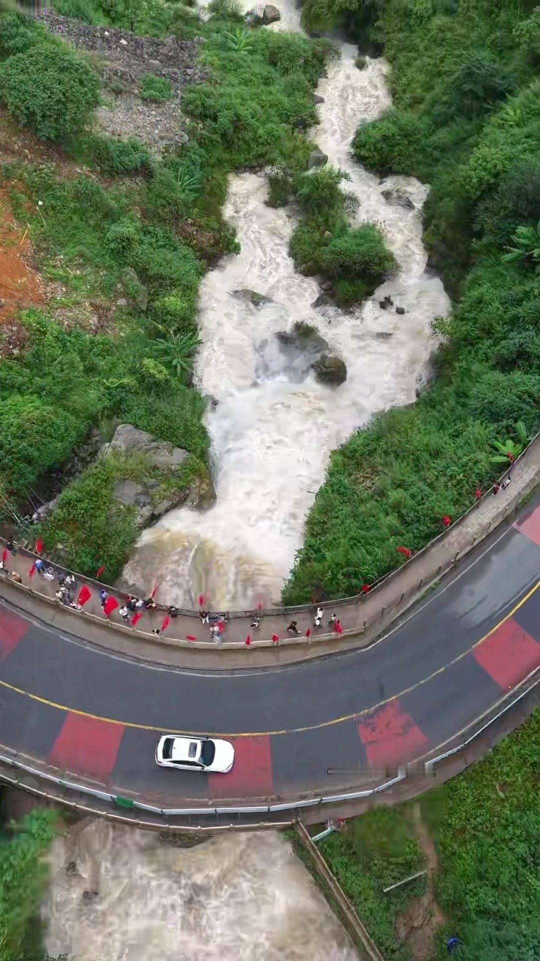 为拍到壮观景色,用穿越机克服无人机难上的位置,当天水量充沛,虽试了几次才成功,但