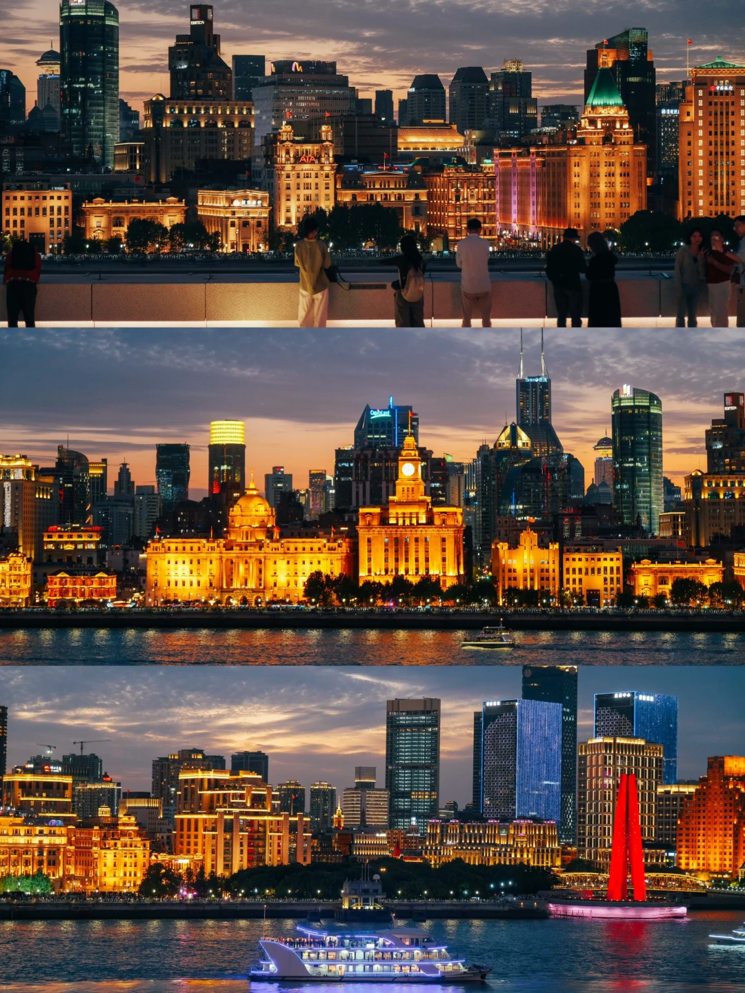 5️⃣外滩亮灯,提前在顶层的露台或者镜厅找好位置,可以捕捉亮灯的瞬间,和白天的氛围不同,会被亮灯的瞬间深深震撼,这就是专属于上海的浪漫吧。