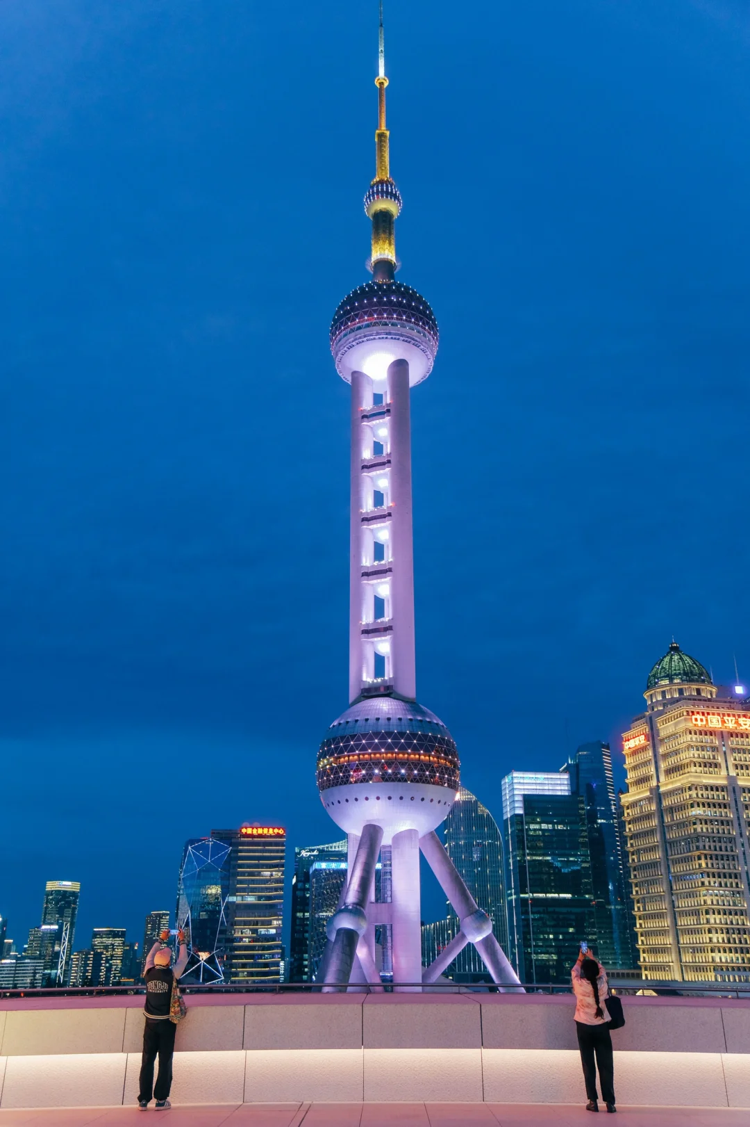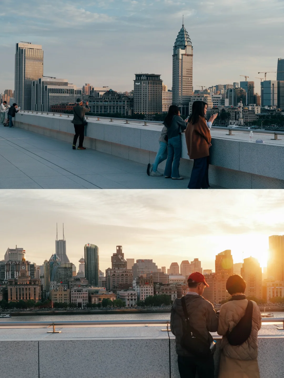 2️⃣再去顶层360°全景露台,东方明珠塔好好拍;傍晚的光线比较柔和,也更能拍出好看的照片,还可以俯瞰整个外滩的景色,华灯初上时,又是另外一番景色,华丽丽的夜景