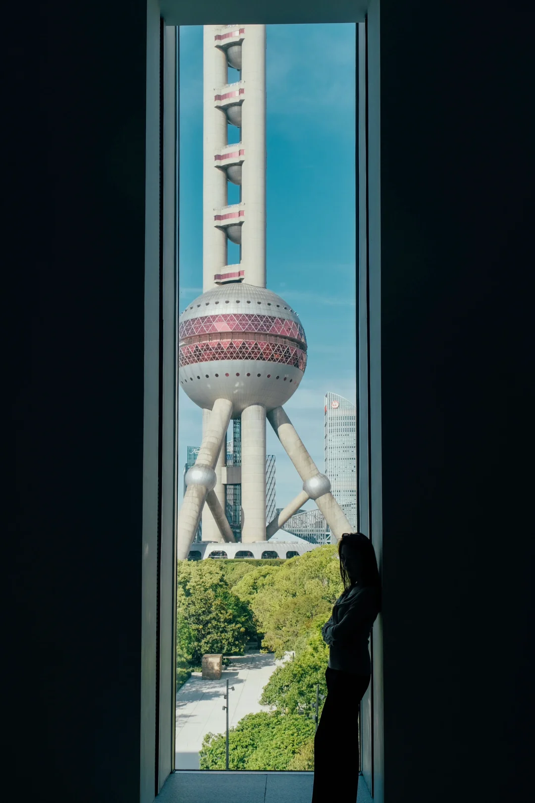 3️⃣东方明珠框景窗,美术馆各个楼层的东立面窗户都能拍到和东方明珠塔的合影。