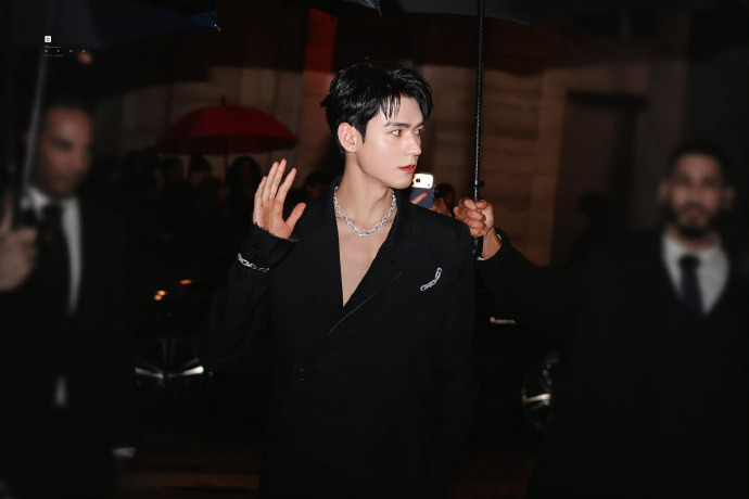 龚俊巴黎看秀神图来了,堪称倪妮男版撑伞神图。