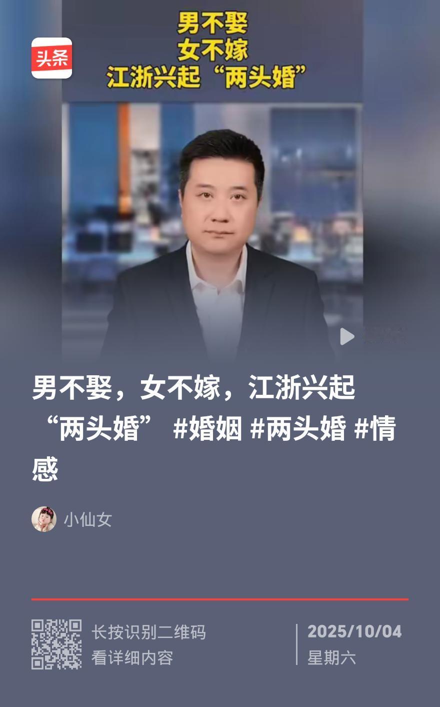 年轻人结婚玩新花样!“两头婚”不嫁不娶,娃各随一姓超省心? 最近年轻人结婚跳出老套路,“两头婚”悄悄走红。不搞“女嫁男娶”那套,也不是入赘,小夫妻自己住超自由。 关键是生俩娃,一个随爸姓一个随妈姓,两边老人都不担心“香火断了”,像给两家都递了颗“定心丸”。 独生子女一代超爱这模式,毕竟谁也不想让爸妈失落。女生经济独立了,也不愿委屈自己。 就是偶尔有点小麻烦,比如孩子教育、过年回谁家,得好好商量。你身边有这样的新家庭不?能接受不?年轻人结婚现状 年轻人结婚现状 不结婚利弊