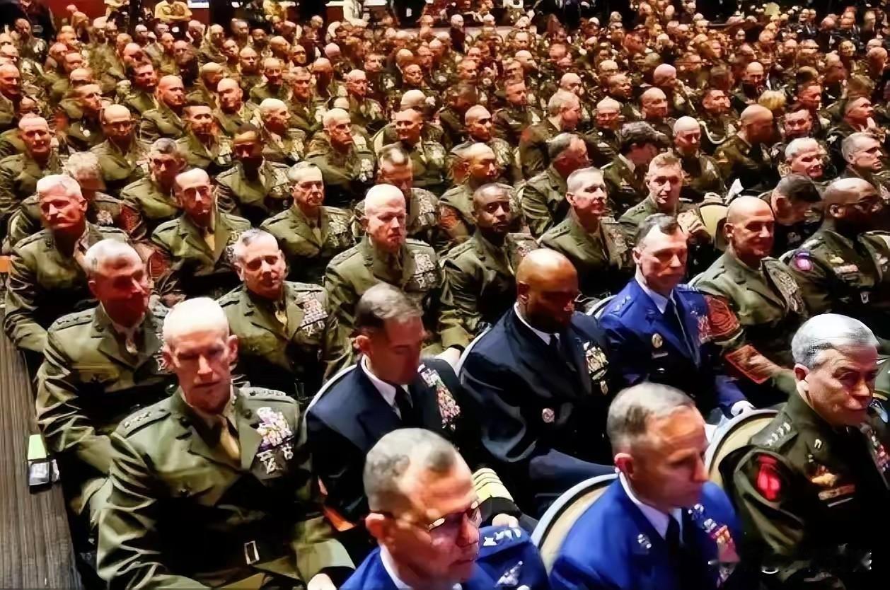 美军大大小小的核心人物,都在这里坐着呢,通过画面看,这些人的岁数也都不小了,现在特朗普要对这些人进行改革,提高美军的战斗力,不知道特朗普的这些想法,能否在这些人身上得到具体的贯彻和落实。所以说特朗普给这些人训了70多分钟话,战争部长给这些人训了40多分钟话,看这些人的精神状态,做的也是规规矩矩,不知道他们心里是怎么想的!