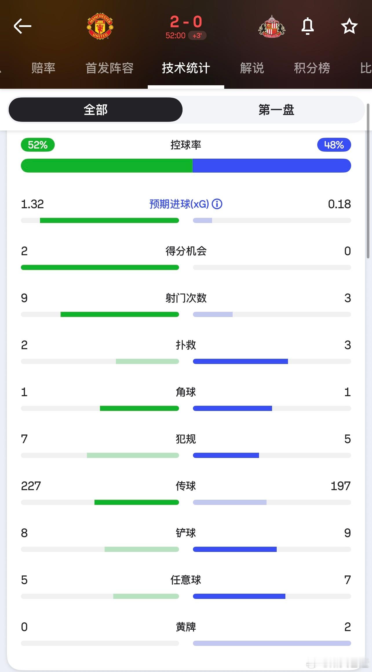 曼联这个半场踢得相当犀利了,基本压制黑猫,鉴于两队过往战绩,今天大概率能拿下。最