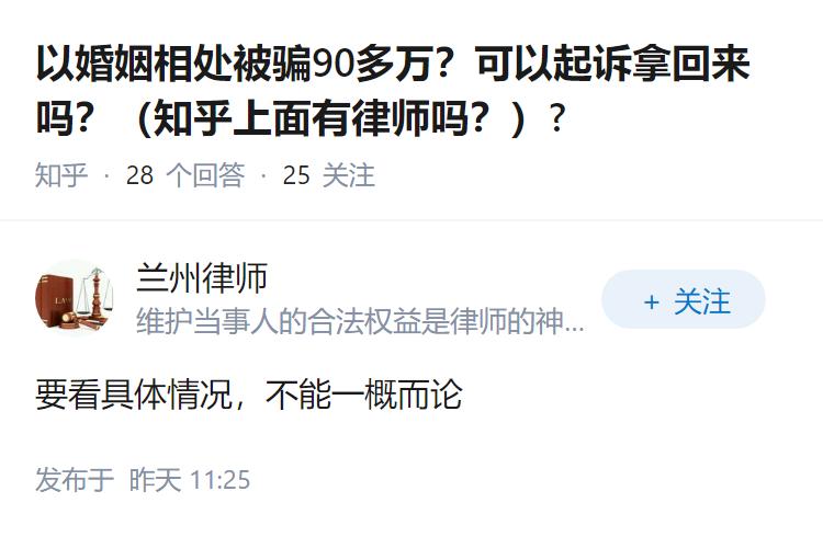 以婚姻相处被骗90多万?可以起诉拿回来吗?(知乎上面有律师吗?)?