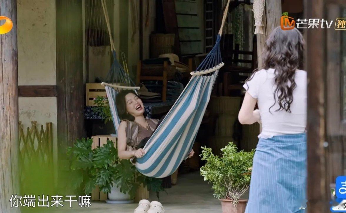 辛芷蕾见状,就放心地去吊床躺着休息了。正当岁月静好时,马思纯拿着锅胆走了出去。