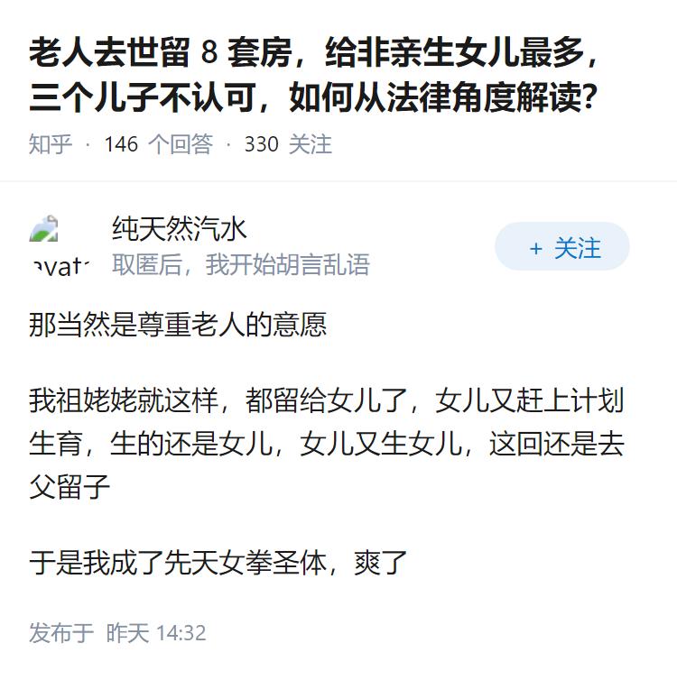 老人去世留 8 套房,给非亲生女儿最多,三个儿子不认可,如何从法律角度解读?