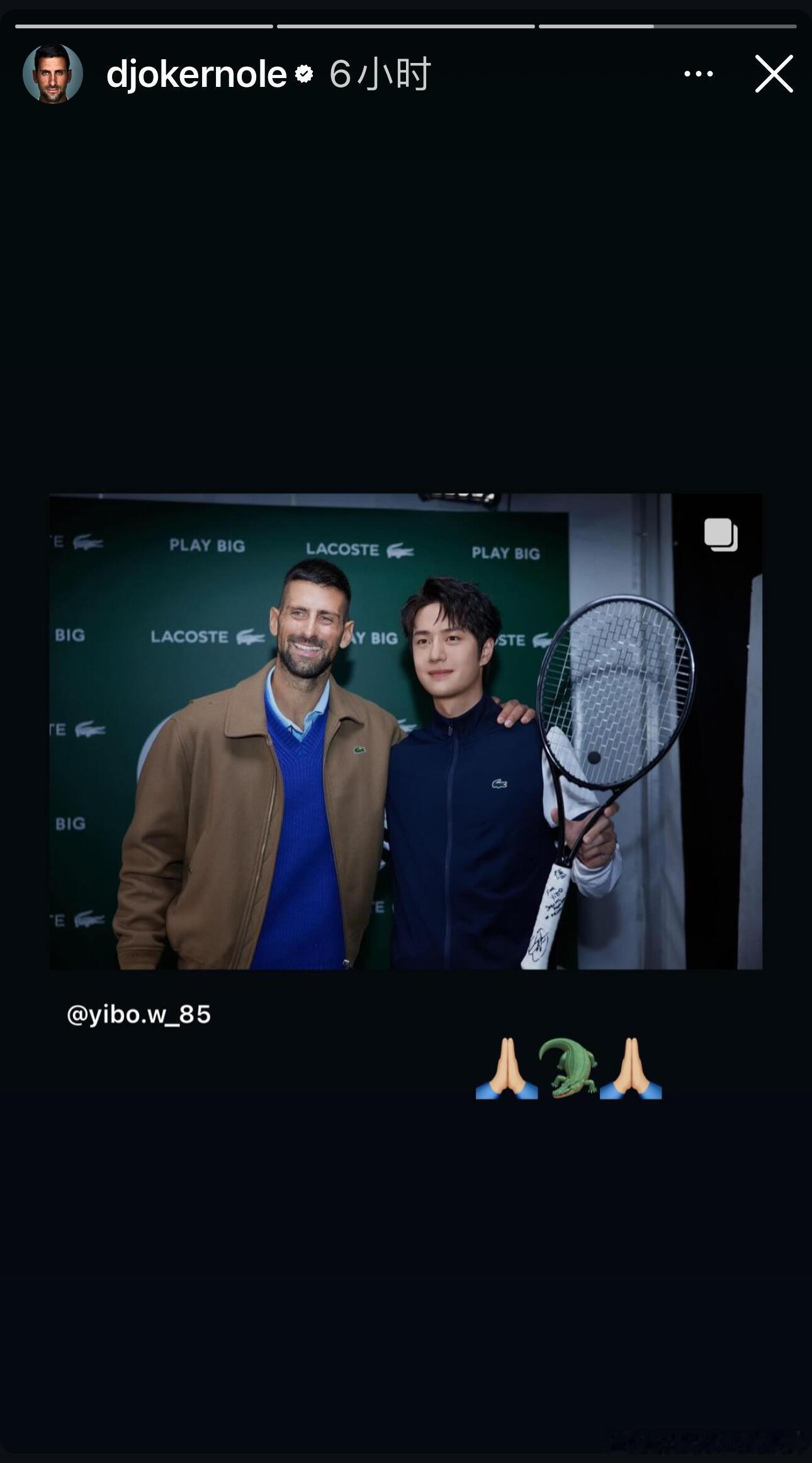 图一,这下拍清楚了,真的王一博,来看德约科维奇;他们两个去年就有交集,图2到图8(去年的)