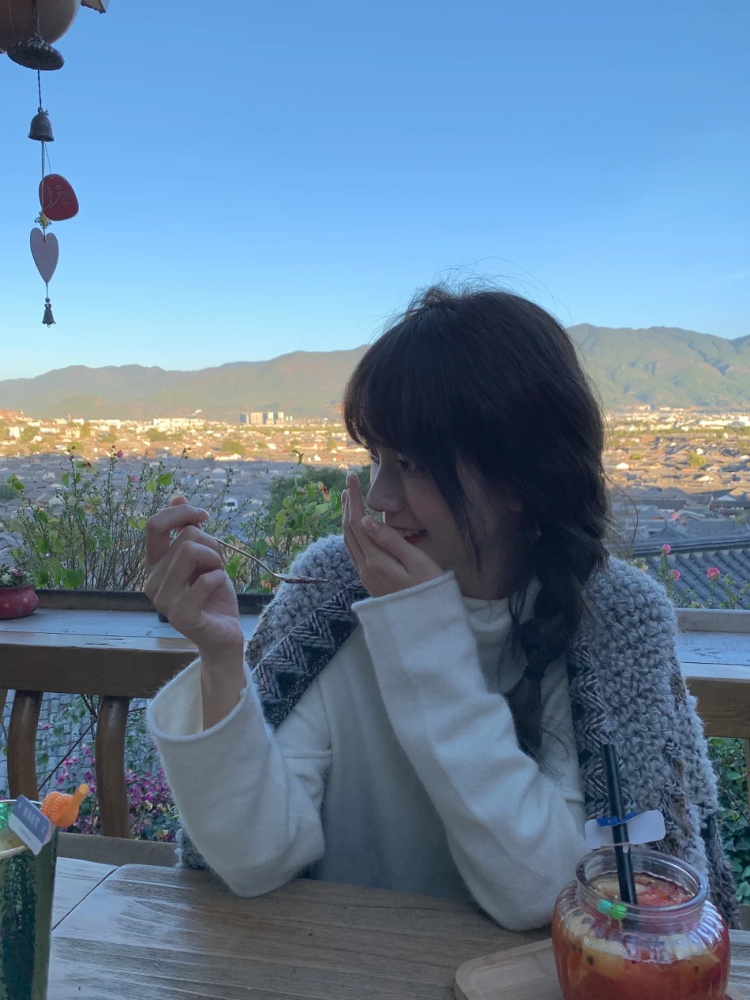 在丽江古镇里悠哉悠哉的逛逛~ 去可以俯瞰古镇全景的咖啡店坐坐! 真的太美太治愈了!~