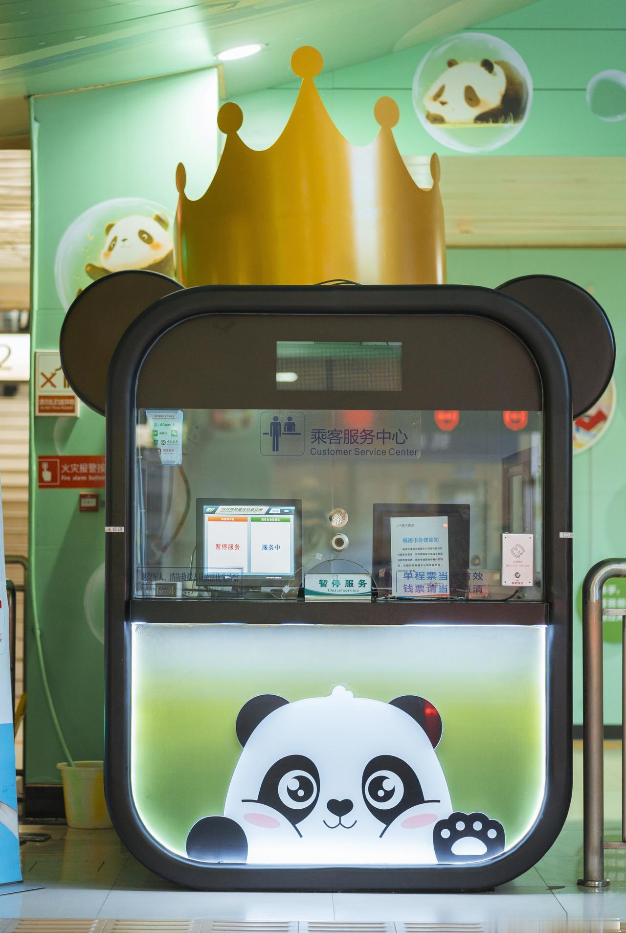 单轨2号线动物园站,从站厅到站台,从售票机、闸机门到立柱、楼梯,随处可见的泡泡和熊猫元素相映成趣。欢迎小伙伴们前往打卡~(图/运营一分公司 雷相嵩)