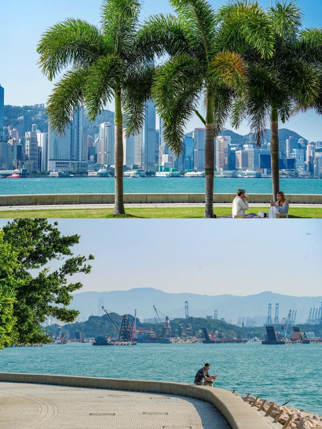 ✅西九龙海滨长廊,这里可以拍照📷、散步🚶、遛狗🦮和野餐🧺,对面就是维多利亚港,傍晚在海滨长廊看日落,相信7:00以后的夜景一定会被惊艳到❗