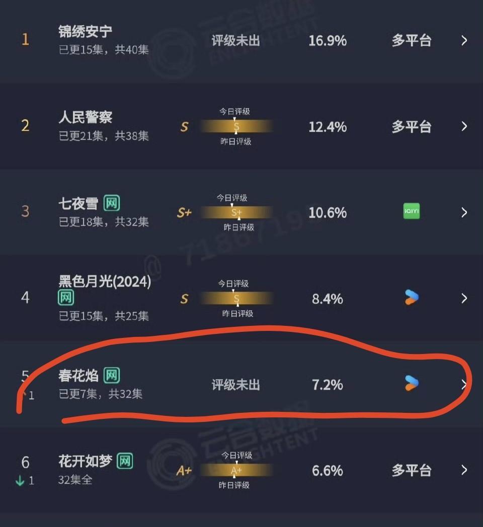 陈哲远的新剧开播了,总共38集的剧,目前已经播了10集,云合才6.5。 还没有吴