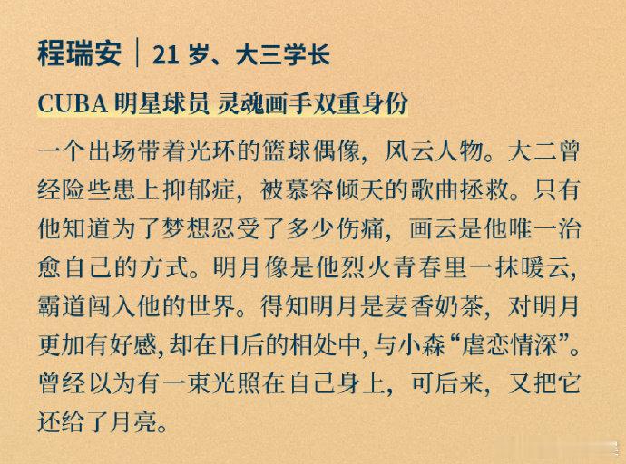 张嘉元不会打篮球的画家不是好演员 篮球场上,他风驰电掣;画布之上,他诗意盎然;镜头之中,他深情款款。张嘉元,中秋加训官宣的“程瑞安学长”,以三重技能,成为校园里最耀眼的存在!