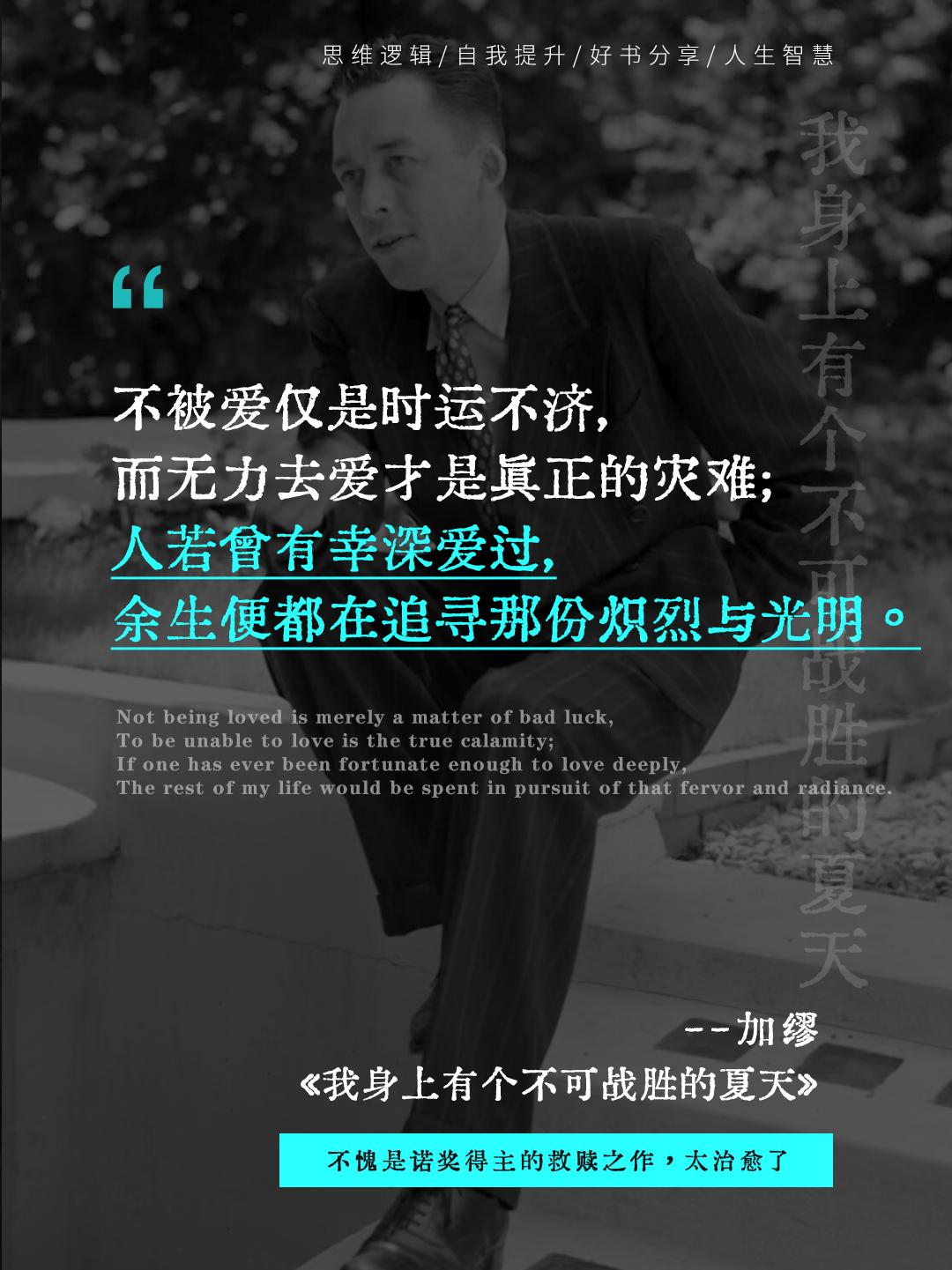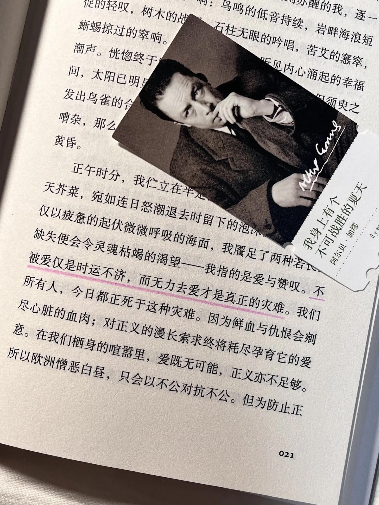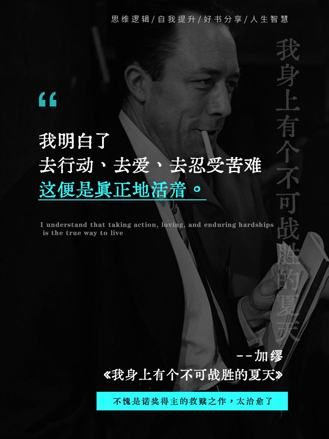 读完加缪,我的焦虑被阳光晒化了固。这是我永远也到达不了的文学高度吧,诺奖得主加缪的代表作《我身上有个不可战胜的夏天》,2小时就能读完的书,却被很多人称为救赎之书!如果你也感到迷茫、疲惫、迷失,请翻开这本书,让加缪做你灵魂的引路人,亲手点燃你心中那个不可战胜的夏天~