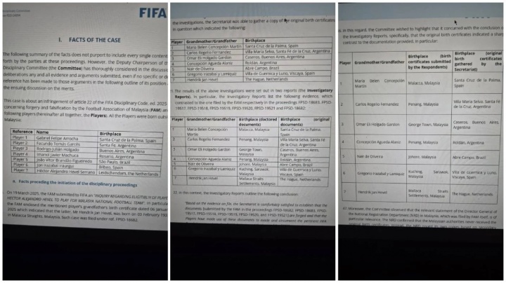 FIFA表示,这些记录的真实性已通过与各国民事登记机构的交叉核查确认,目前没有经核实的证据表明这些球员的祖源与马来西亚有关。报告还指出,马来西亚国民登记局是依据申请人提交的间接信息而非原始出生记录,为这些球员核发了文件副本。
