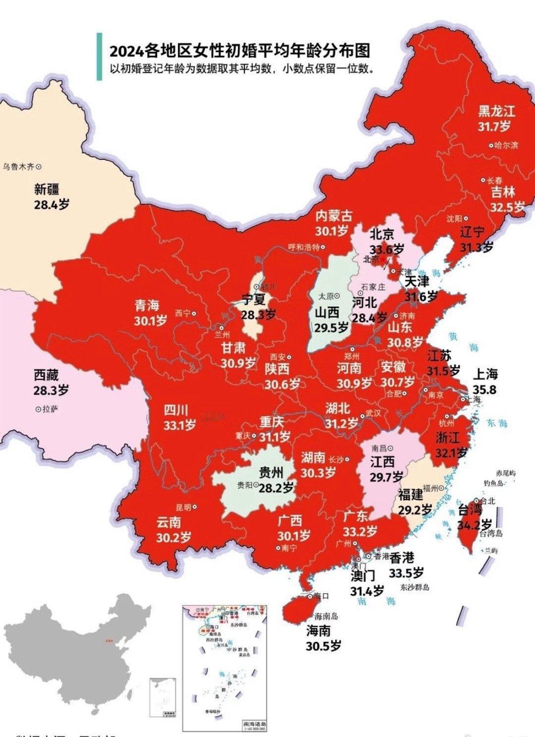 2024年全国各地的男女初婚年纪基本都破30了。 我去搜了下数据来源,没有找到。 不过几年前的明确数据显示已经到二十八九了,去年上30也不算夸张。 现在全国不论南北,不论男女,结婚都挺难的。