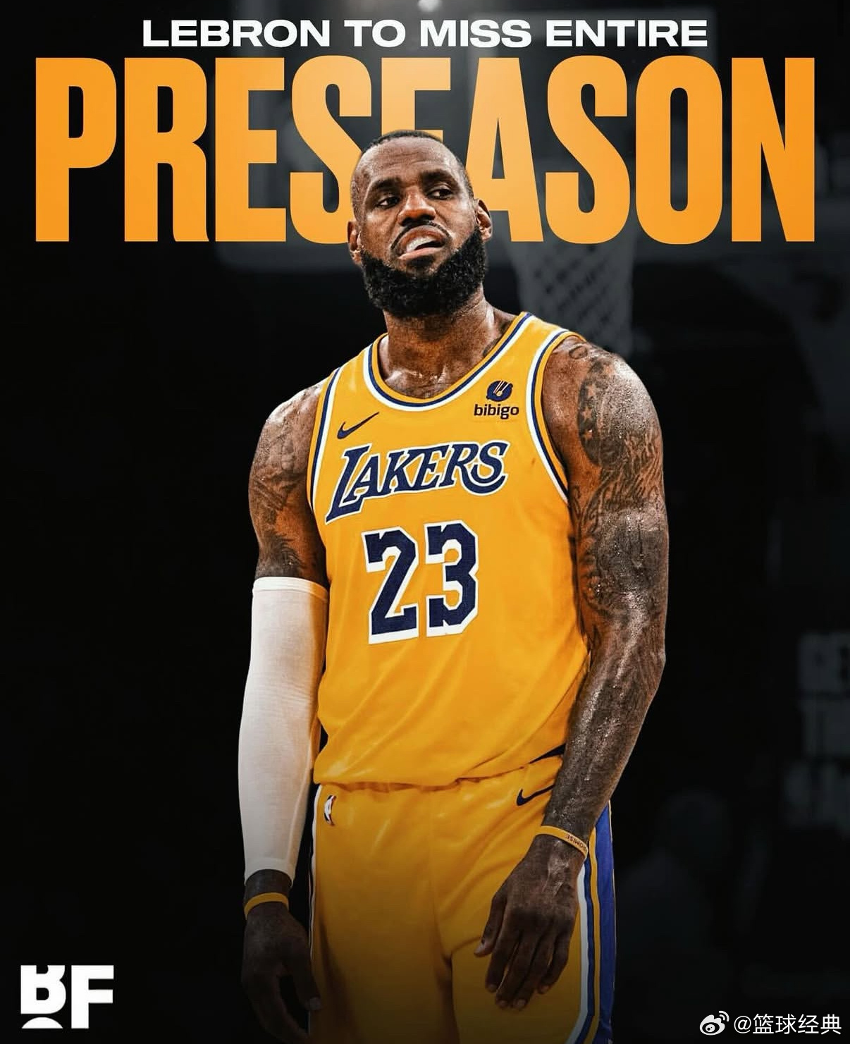 据名记Shams报道:詹姆斯预计将缺席整个季前赛,目标是在常规赛揭幕战前准备就绪!