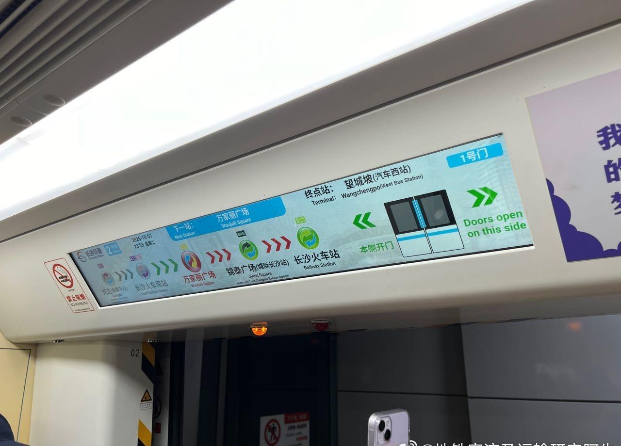 长沙2025年10月07日23:28,天气晴朗,长沙地铁2号线,往梅溪湖西方向,由于广州地区强暴雨影响导致广深北上列车大量晚点,长沙地铁加开两趟疏解列车,区间为长沙火车南站-望城坡站, 长沙火车南站加开列车列车车内客流实况。