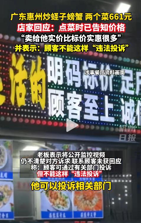广东惠州,一男子国庆去海边旅游吃饭,点了炒蛏子和炒螃蟹两个菜,提前问价格时,店家并未明说,而是让他先吃,可等吃完去结账时,男子却傻了眼,两道菜竟要661元,事后店家也做出了回应,网友:这真是“一锤子”买卖! 眼看着国庆长假的脚步近了,小杨(化名)和室友盯着中国地图上那片蔚蓝的南海沿岸,心里像被海风吹着,痒痒的。 热门的三亚、厦门人山人海的画面仿佛已在眼前,他们不约而同地想寻一处清净。“惠州怎么样?”小杨指着那个不太起眼的名字,“听说有些海湾还没完全开发,人应该不多。” 这个提议像一颗投入静湖的石子,立刻激起了涟漪,两人在网上翻看着攻略:巽寮湾的月牙沙滩,双月湾的奇特地貌,还有那些性价比极高的海景民宿……越是了解,心思就飞得越远。 他们幻想着在没什么人的沙滩上散步,看潮水漫过脚印;而不是在热门景区里看人山人海,对“小众”和“清静”的共同渴望,让目的地一锤定音。 假期第一天,两人就已背上了塞满的行囊,公交、地铁,最后汇入高铁站涌动的人流,但他们觉得自己的方向与周遭奔赴著名景区的喧嚣格格不入,心中怀揣着一份“反向旅行”的小小得意。 到了惠州,空气里那股咸腥的海风,对他们来说就是最诱人的开胃菜,两人撂下行李,就直奔海边的大排档。 “总算到海边了,必须整一顿海鲜!”小杨搓着手,兴奋里带着克制,虽说想着靠海吃海应该不贵,但新闻里那些“天价海鲜”的阴影还是像背景音一样在脑海里嗡嗡作响。 两人在池子边逡巡了好几圈,看着标价,心里默默做着算术,最终还是没敢向那些生猛硬货下手。 “老板,来盘炒蛏子,再来个炒螃蟹。”他们选了最稳妥、看起来最“平民”的两样。 老板围着沾满油渍的围裙,闻言麻利地抓起网兜:“螃蟹要哪种?这个**嘛**,**XX**元一斤。” 他语速很快,那个数字和斤两的概念像耳边风一样,还没等他们在脑中进行价值换算,就已经飘过去了,另一盘蛏子的报价也是如此。 两人对视一眼,一种“外乡人”的怯意让他们没好意思追问细节。“反正就两盘炒菜,能贵到哪里去?”小杨低声对同学说,像是在安慰对方,也像是在给自己壮胆。 酒足饭饱的惬意感,在老板拿着那张皱巴巴的账单走过来时,戛然而止。“一共661元。”老板的语气平淡得像在报一道菜名。 小杨和同学脸上的笑容瞬间僵住,仿佛被海风冻在了脸上。661?这个数字像一记闷棍,敲得两人头晕眼花。同学下意识地接过账单,眼睛几乎贴了上去,逐字确认。 “这……”小杨喉咙发干,想问清楚这价格是怎么算出来的,是用了多大的蛏子,多珍稀的螃蟹?但话到嘴边,看着老板那副见怪不怪、甚至带着点“你爱付不付”的神态。 两人交换了一个憋屈又无奈的眼神,生生把质疑咽回了肚子里。 “扫码吧。”同学低声说,声音里带着一丝不易察觉的颤抖,支付成功的提示音此时听起来格外刺耳,像在嘲笑他们刚才那份“能贵到哪里去”的天真。 一走出店门,海风的咸味仿佛都带着一股被宰割后的屈辱感,刚才的隐忍瞬间化为了行动力。 “不能就这么算了!”小杨立刻掏出手机,不再只是私下吐槽,而是直接点开了官方旅游投诉平台的APP。 他详细写明了店铺位置、消费项目、金额,并上传了账单照片作为铁证,同学则在旁边补充细节,两人一唱一和,把一腔愤懑都化为了条理清晰的投诉文字。 让他们略感欣慰的是,投诉渠道异常顺畅,提交后不到半小时,就收到了文旅和市场监管部门已受理的短信回复,第二天上午,便有工作人员主动联系他们,核实具体情况。 店家表示:他们每一道海鲜的价格和斤数,在点单的时候都跟杨先生确认得一清二楚,交易过程是完全透明的。 但是那两名学生表示:自己当初点菜的时候,老板就模模糊糊的不肯说价格。 店家解释说,这只螃蟹重2.4斤,进货成本就接近160元一斤。再加上3斤蛏子,每斤68元,还有两个人的茶位费6块钱。这么一笔一笔加起来,不多不少,正好是661元。 现场的沟通显然是失败了,于是双方不约而同地开辟了“第二战场”——公共舆论场。杨先生选择付款后,转身就把自己的经历发到了网上,贴上“海鲜刺客”的标签,迅速引爆了话题,10月7日就冲上了热搜。 店家也没闲着,他们公开回应,不仅欢迎杨先生去有关部门投诉,还抛出了一个重磅炸弹:准备公布监控录像自证清白,店家还表示,事后曾尝试联系小杨但没联系上。 信息来源:杭州日报