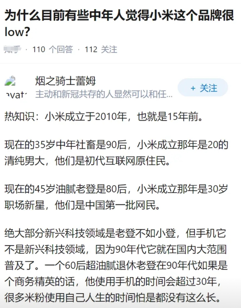 为什么目前有些中年人觉得小米这个品牌很low?