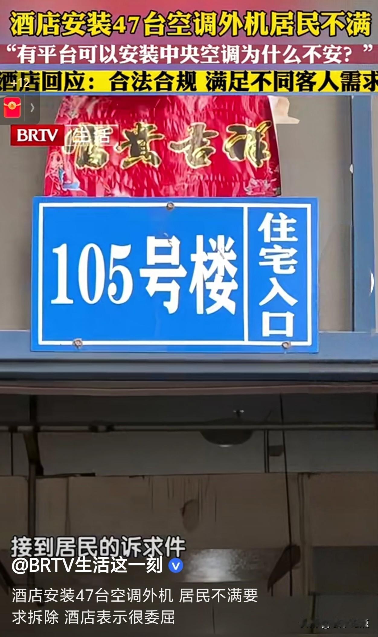 真有意思,炎热的夏天自己家可以用空调,但别人不能用。北京一群老头老太投诉酒店用空调。 北京朝阳区18里店一家宾馆装了几十台空调,附近一群老头老太竟然去政府投诉这家酒店,说酒店空调悬挂的外机噪音太大,滴水,把热气排放到居民区使小区温度升高,影响居民生活。 那这个空调装的是有问题吗?是不是离居民楼太近了?政府工作人员和电视台都派人前去实地查看。发现酒店是沿街的铺面,其背面所装空调外机确实正对着小区里面的居民楼,但是离最近的居民楼至少有几十米的距离。如果空调外机同时开启,肯定是有噪音的。但是就算噪音再大也比居民自己家装的空调远很多,要知道居民楼也是家家装空调,所装空调的外机就直接在自家的窗户外,如果要论噪音的话,自己家的空调外机噪音才是最大的,所以居民所反映的噪音大的理由根本不成立。还反映宾馆空调把热气排到小区里了,让小区的温度升高,那这要怎么测定呢?空调不就是把热气排出去的吗?如果说温度升高是空调排出来的,那么整个小区都不应该用空调,你们居民自己能做到吗? 而酒店也给出了回应说,酒店装空调合理合法,不存在违反任何环境保护规定。对呀,居民夏天家里要凉爽,能用空调,却不让酒店的客人享受空调,这种只允许州官放火,不允许百姓点灯的投诉实在是有些可笑。 还有一位女士说自己有一天看到一个光膀子的男人站在宾馆窗户前有伤风化,这个竟然也能成为投诉的理由。如果这个客人只是光着膀子没有全裸,站在宾馆的房间里面。这并不违反任何法律吧? 现在的夏天天气热,可不仅是你这一个小区,而是全北京,全国都是这样。如果停了宾馆的空调,小区就能凉快下来,那真是痴人说梦。 其实这一群老头老太如果真想过一个没有噪音凉爽的夏天,可以去深山老林里住,人烟稀少又凉快,没有空调打扰你。但如果你想生活在北京这种人口密集的地区,那就不得不忍受炎热和空调噪音了。